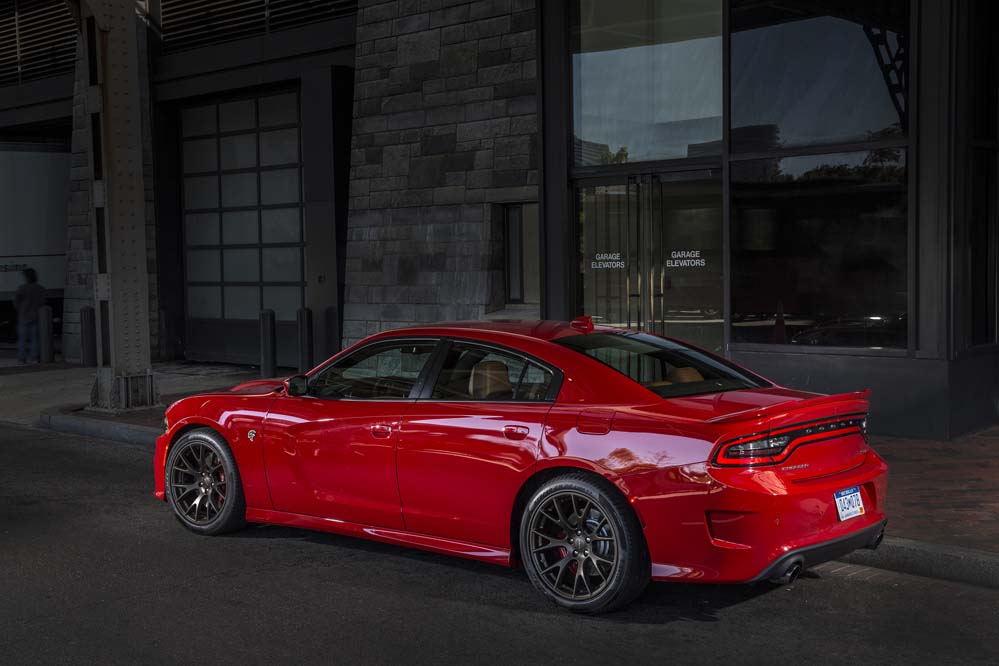 ‘Muscle Car’ es la palabra en la que la marca ha puesto mayor énfasis a la hora de definir uno de sus productos estrella, el Dodge Charger SRT Hellcat 2016, deportivo que hoy probamos. Y no es para menos, porque además de ser la berlina más rápida, presenta una estampa potente, admirable. Adopta elementos de algunos miembros de la familia Dodge, como el Challenger, del que roba las llantas de 20 pulgadas de aleación forjada, únicas en la gama y que son capaces de albergar unos frenos Brembo con pinzas de cuatro pistones, los traseros, y de seis, los delanteros. También del Viper, porque suyo es el capó con extractores -el central, que es más grande, está moldeado por los colmillos de la víbora, mismo elemento estético que también se ha utilizado en la parrilla superior-.