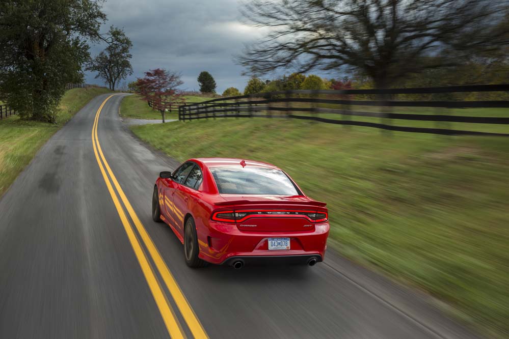 Como buen ‘muscle car’, los hombros son bastante anchos. Tiene una línea de cintura muy marcada, pero más refinada y con mayor curvatura que la del Challenger, con lo que se consigue una apariencia más dinámica. Y si echamos una mirada a la zaga, descubriremos un esculpido alerón, bastante grande, que ayuda a mantener la trasera pegada al asfalto a alta velocidad. Además, es imposible que pasen desapercibidos los pilotos, que pueden llegar a ser los más distintivos del mercado, con LED por toda la óptica, de forma continuada, como si se tratase de un circuito. ¿Y qué mejor colofón que una salida de escape trapezoidal a cada lado?