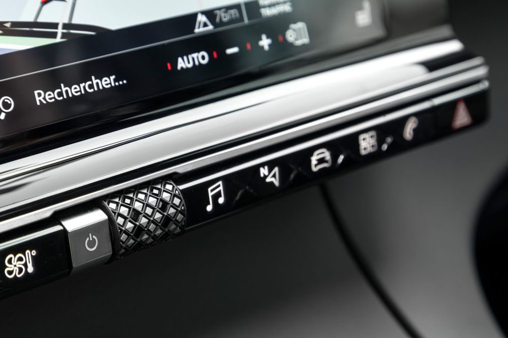 Sigo rodeado de rombos: los de la gran pantalla del sistema de infoentretenimiento, que tiene un display formado por ellos al igual que el botón del volumen, que es en realidad una ruleta de diseño elegante que se mueve hacia arriba y hacia abajo como si de la ruleta del ratón se tratase. Las luces y los botones del plafón superior también tienen la misma forma.