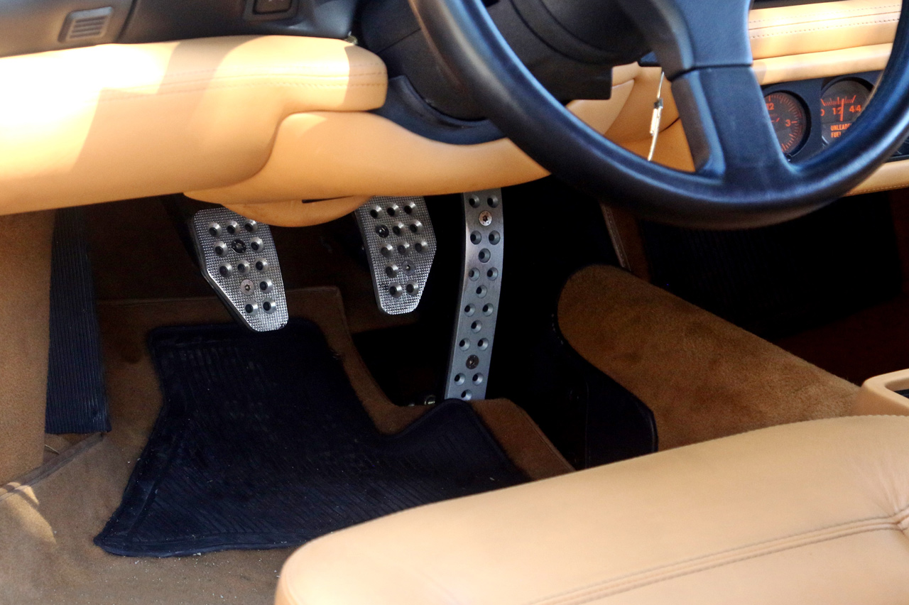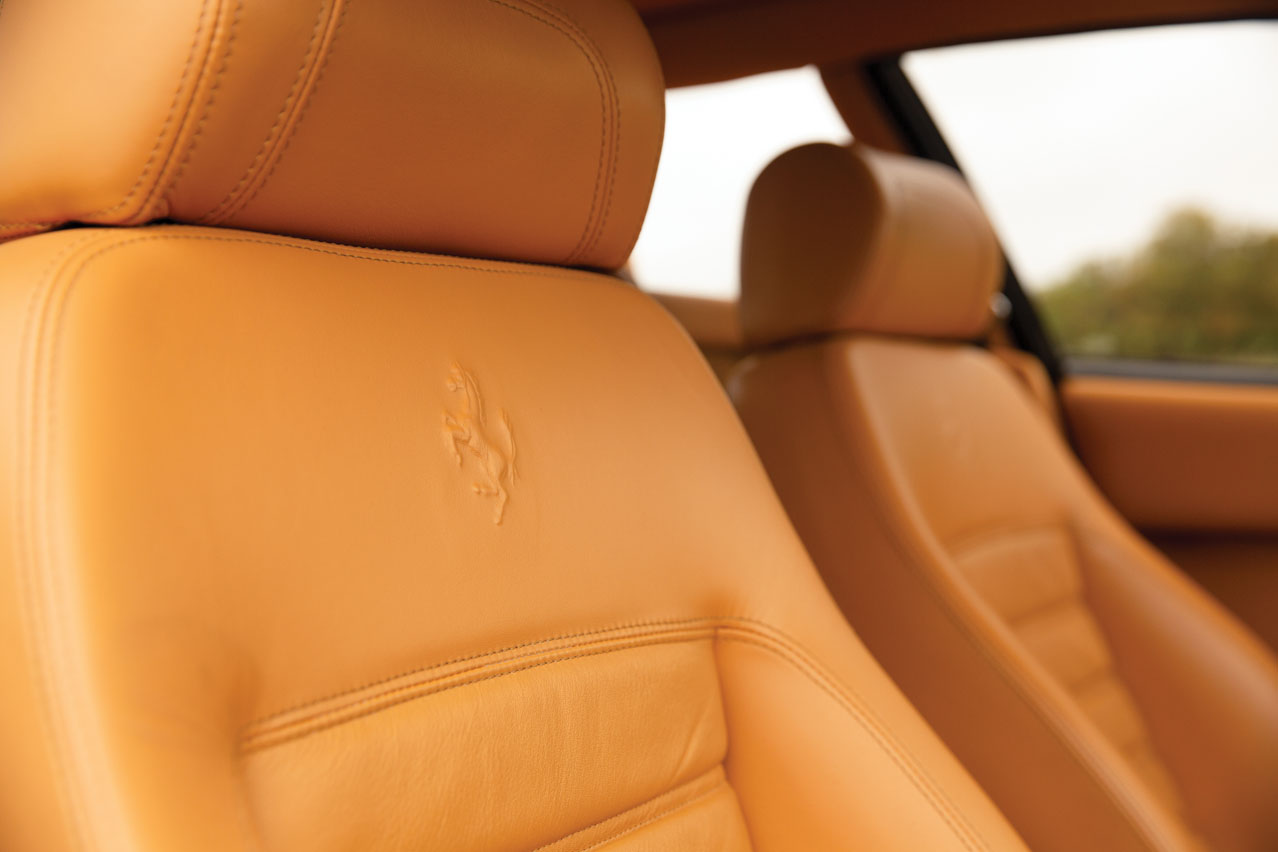 Algo que llama la atención es la postura de conducción. El volante está notablemente inclinado y los pedales están ligeramente desplazados hacia la derecha, algo habitual ya que en estos coches la propia arquitectura del vehículo hace que el espacio para los pies se vea invadido por la parte izquierda. Sin embargo, no es tan dramático como en el F40; esto es un GT y se nota un habitáculo muchísimo más refinado.