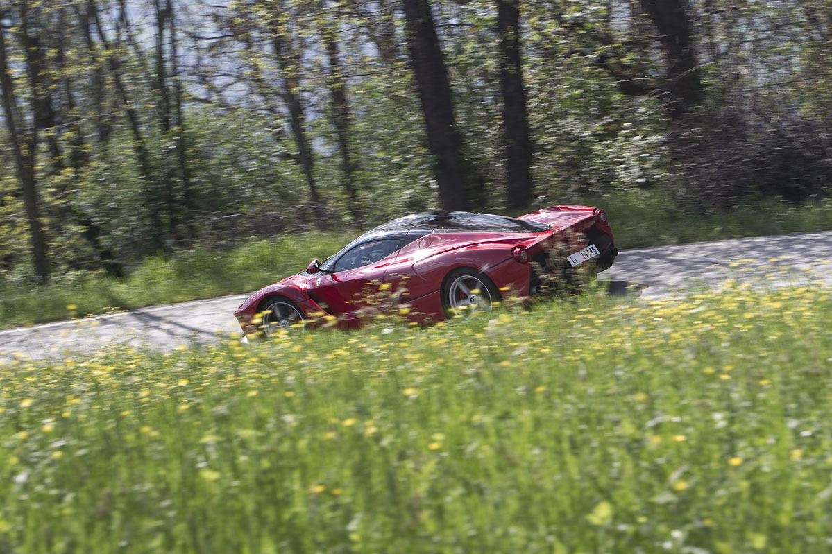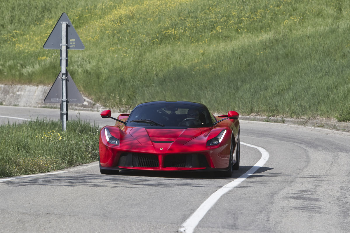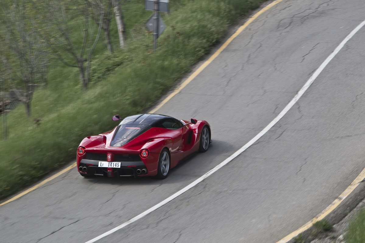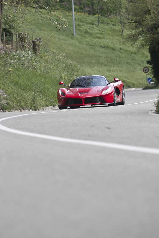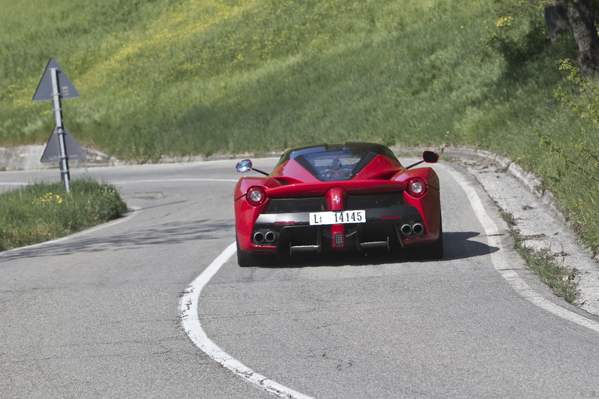 También he podido probar el LaFerrari brevemente en carretera abierta y en esta situación el coche da la sensación de ser aún más rápido. Tanto es así que realmente necesitas elegir muy bien el momento antes de apretar a fondo el pedal del acelerador. Pero a pesar de todo, el comportamiento sigue siendo increíblemente bueno, la dirección perfectamente manejable, la visibilidad sorprendente y la capacidad de uso diario en general no es mucho menor que la de otros modelos actuales de Ferrari. Lo cual es extraordinario dadas las capacidades del LaFerrari en todos los apartados, incluida su especial habilidad para llamar la atención como ningún otro coche que haya probado.