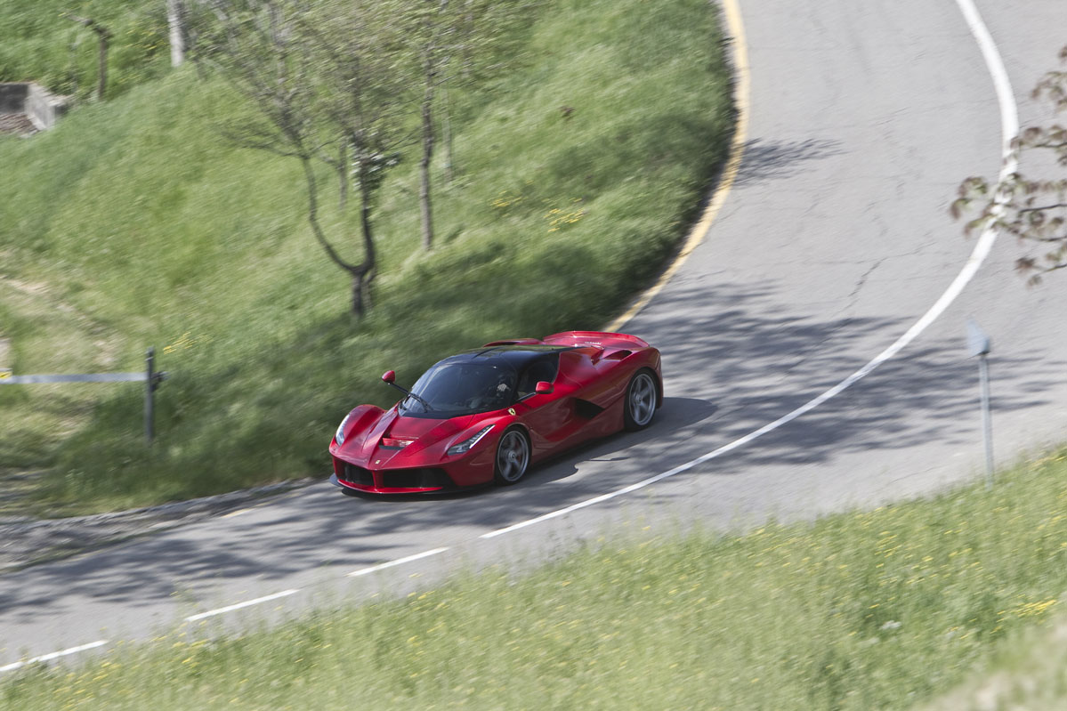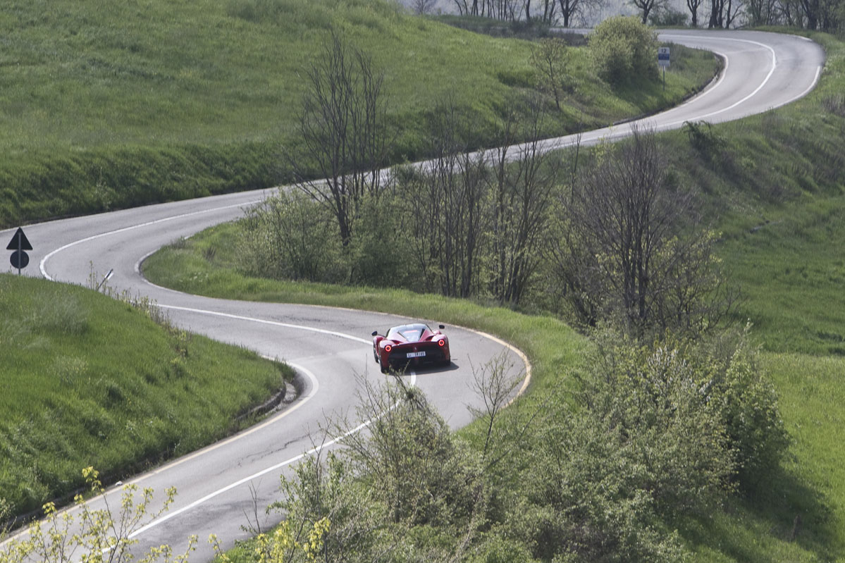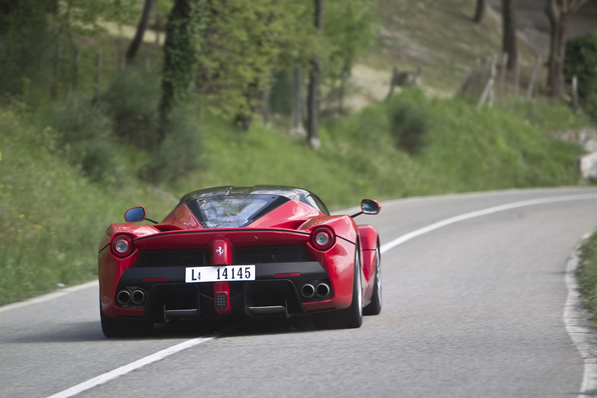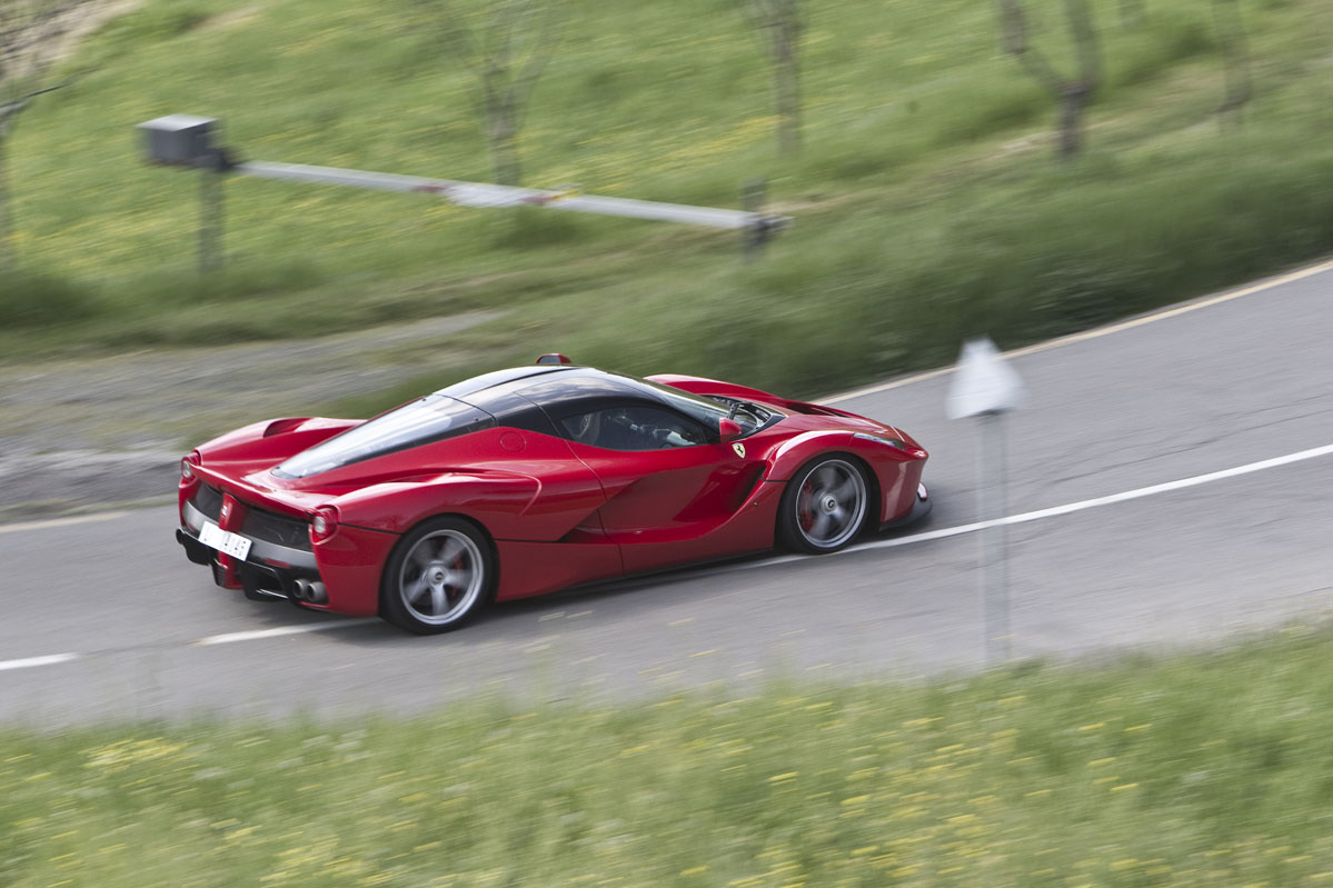 También he podido probar el LaFerrari brevemente en carretera abierta y en esta situación el coche da la sensación de ser aún más rápido. Tanto es así que realmente necesitas elegir muy bien el momento antes de apretar a fondo el pedal del acelerador. Pero a pesar de todo, el comportamiento sigue siendo increíblemente bueno, la dirección perfectamente manejable, la visibilidad sorprendente y la capacidad de uso diario en general no es mucho menor que la de otros modelos actuales de Ferrari. Lo cual es extraordinario dadas las capacidades del LaFerrari en todos los apartados, incluida su especial habilidad para llamar la atención como ningún otro coche que haya probado.