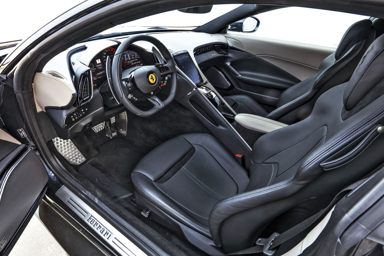 Esa es la idea. El Ferrari Roma es el coche de acceso a la gama Ferrari y según el fabricante es el vehículo ideal para usar todos los días. El interior es muy lujoso, con piel de gran calidad y buenos ajustes, los asientos cómodos y te agarran como un guante, el acceso es sencillo y en general la visibilidad desde el interior es más que correcta. Es la interpretación de Ferrari de un Porsche 911 o un Jaguar F-Type.
