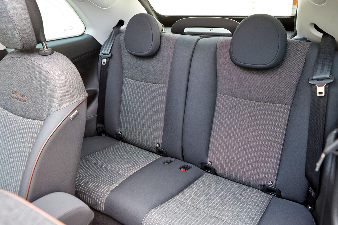 Aunque no lo parezca, el 500e ha crecido 6 cm en longitud y anchura y 4 cm en altura. Pero el estirón más importante es el de la distancia entre ejes, que suma 22 mm, hasta los 2.322 mm. Y dentro se nota con más espacio para la segunda fila, que ahora, con mi 1,78m, mis rodillas rozan levemente con el respaldo posterior, pero se viaja de forma más desahogada que en la anterior generación. Además, son cinco los dedos que separan mi cabeza de rozar con el techo. Y si de espacio hablamos, más concretamente del de carga, son 185 litros los que cubica el maletero.