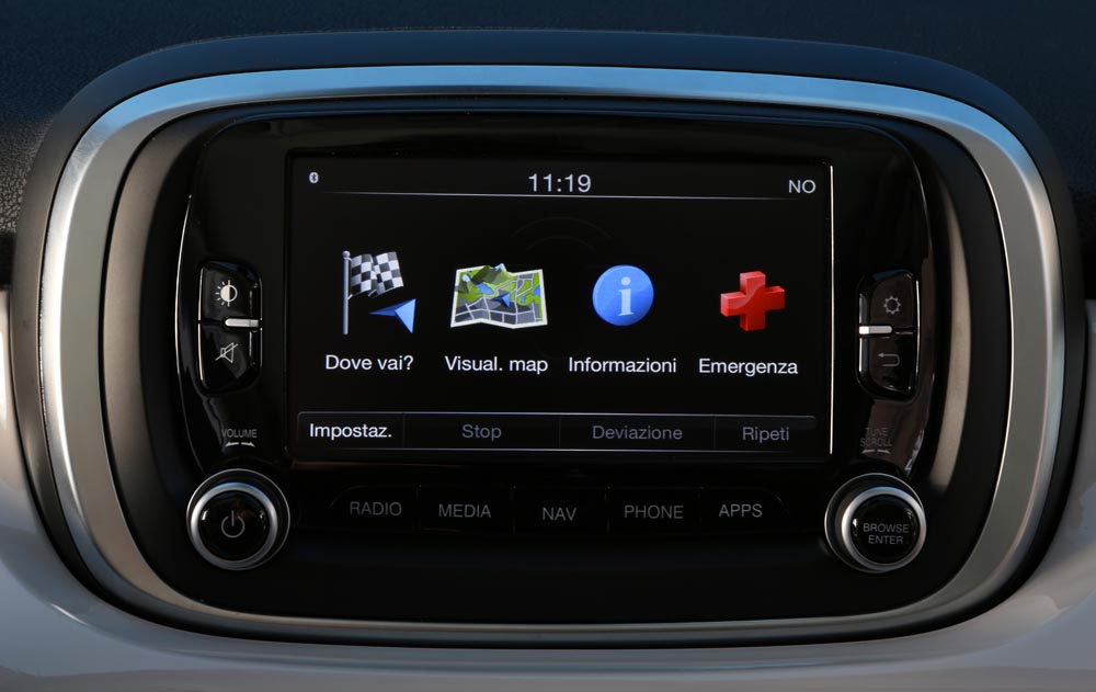 En infoentretenimiento del 500X convence. El sistema ‘Uconnect’, con pantalla táctil de 5 o 6,5 pulgadas, permite controlar el equipo de sonido, además de tener manos libres, almacenamiento de datos externos y los servicios ‘UconnectLive’.
