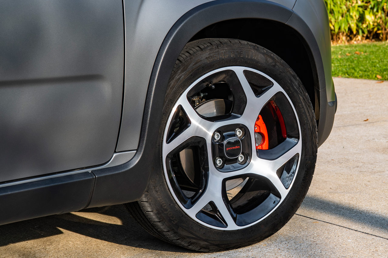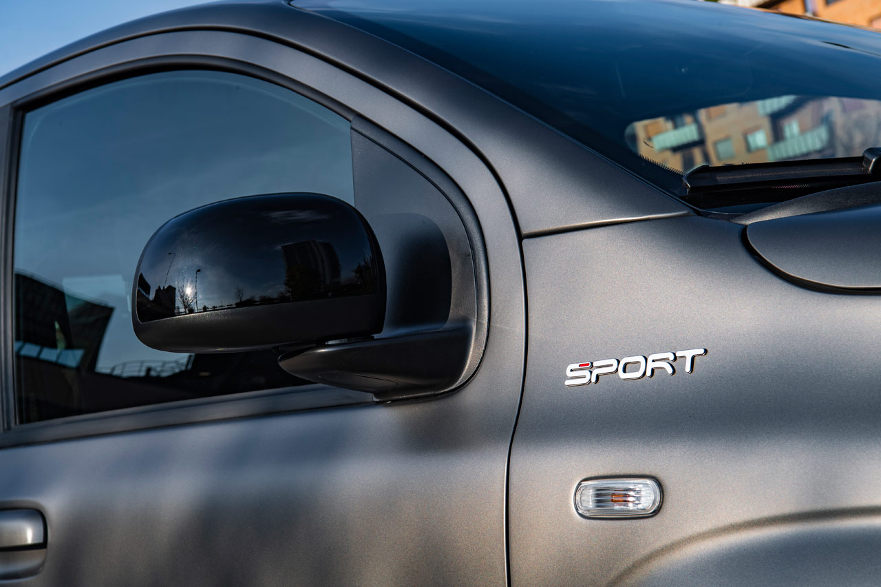 La primera impresión al ver el Panda con este acabado Sport es la misma que cuando vi el (prueba) 500X Sport: “podría pasar perfectamente por un Abarth”. Y el pensamiento no es descabellado si tenemos en cuenta sus llantas de aleación de 16”, las pinzas de freno en color rojo -vienen con el paquete ‘Pandemonium’-, los pilotos traseros oscurecidos, las lunas traseras ahumadas, los faros antiniebla alojados en la parte exterior e inferior del paragolpes y la pintura ‘Gris Mate’ que puedes ver en las imágenes. Se suman los tiradores y las carcasas de los retrovisores en el mismo color de la carrocería y el logo Sport en el lateral.