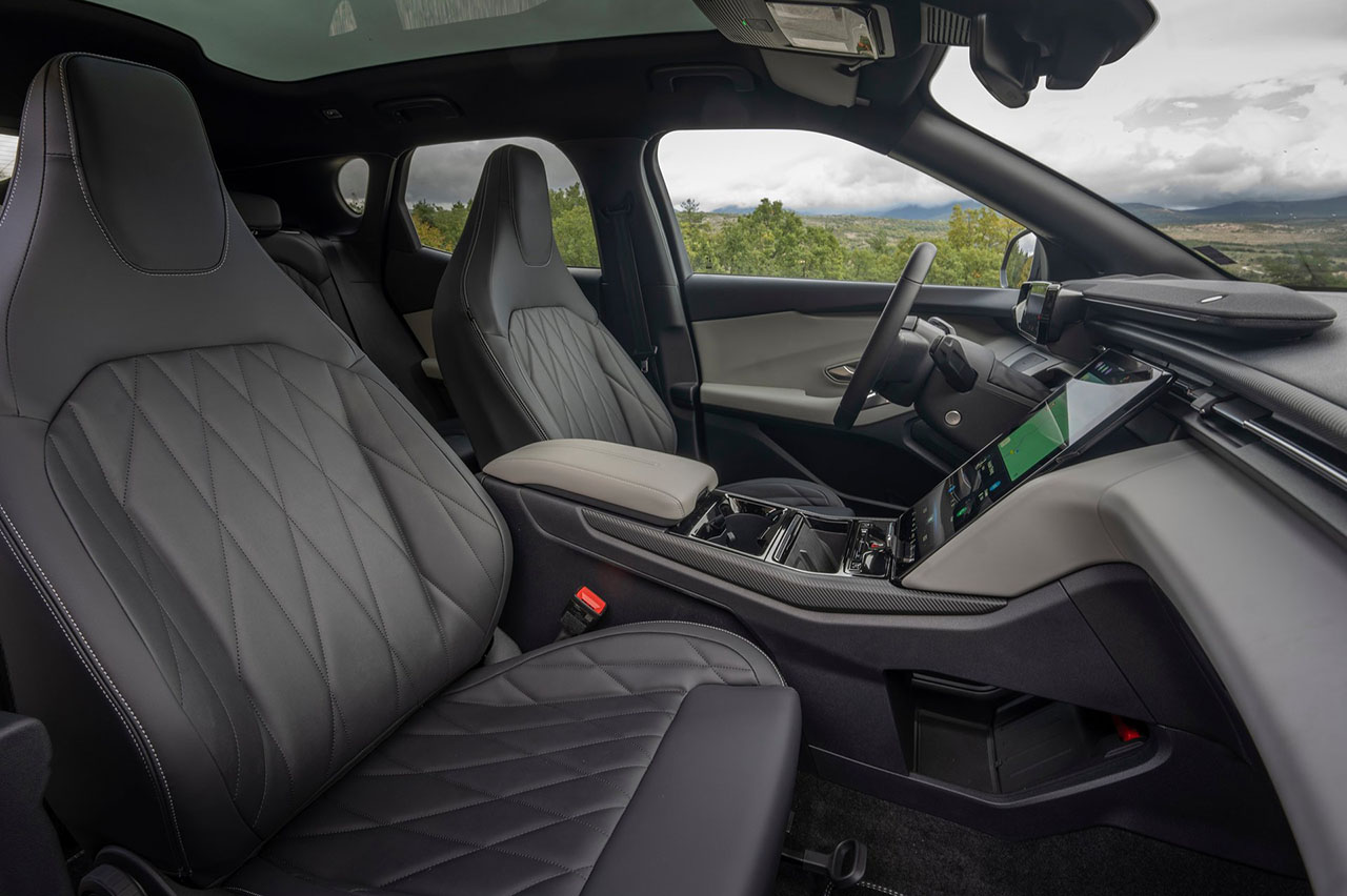 La calidad percibida es buena, muy buena, mayor incluso que en los ID de la firma alemana, con materiales blandos en buena parte de las zonas, mientras que el equipamiento de serie suma, entre otros, asientos calefactables, sincronización inalámbrica con Apple CarPlay y Android Auto, acceso y arranque sin llave, asientos delanteros con calefacción y regulación eléctrica o función masaje en el caso del conductor, volante calefactado, climatizador bizona y sistema de sonido compuesto por 7 altavoces (10 en nuestro acabado Premium y firmado por B&O) en el que sobresale la barra incrustada en la parte alta del salpicadero.