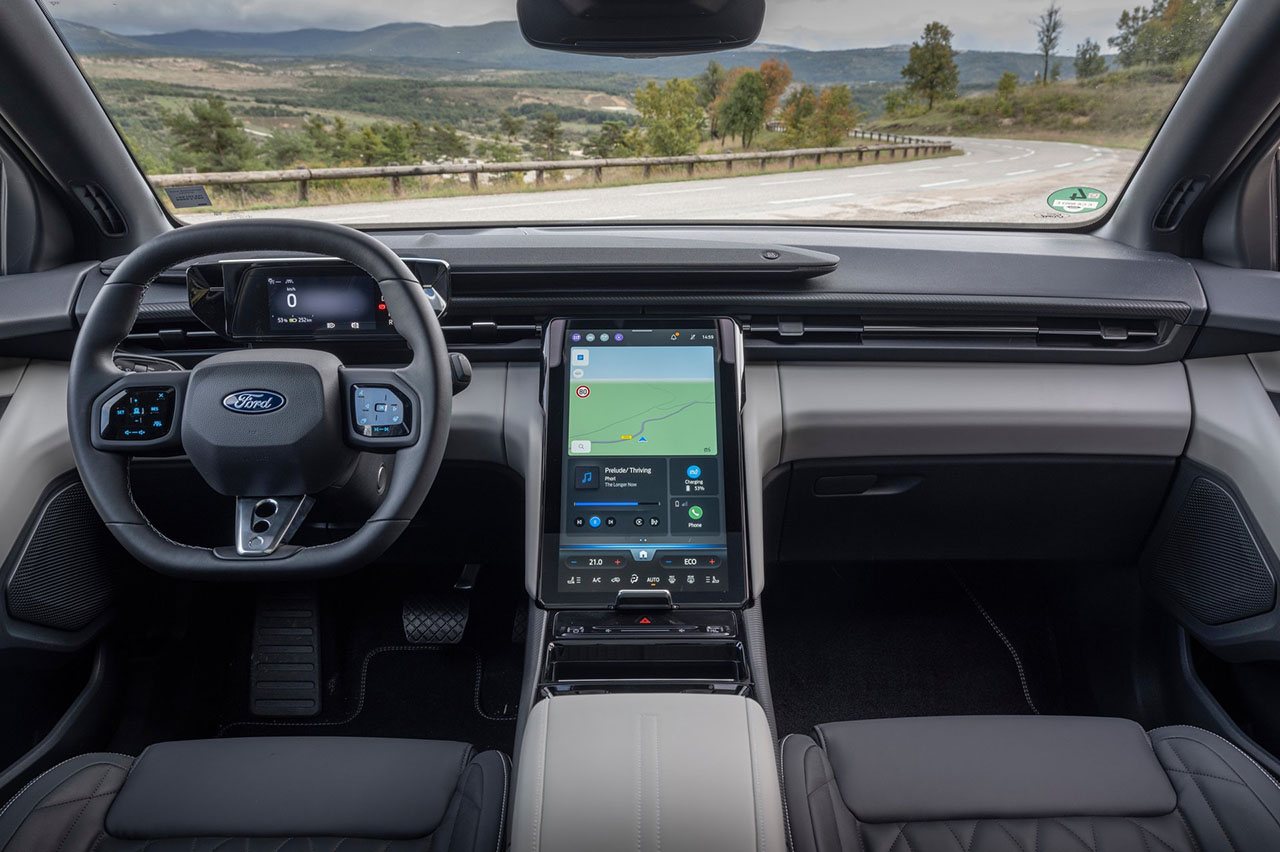 Justo por debajo se sitúa el monitor central de 14,6 pulgadas que tan pronto puedes verlo dispuesto verticalmente como inclinado en un ángulo de 30º integrándose perfectamente en la consola central. Un gadget que no solo le aporta vistosidad, sino que incrementa la modularidad al brindarnos lo que Ford llama My Private Locker.
