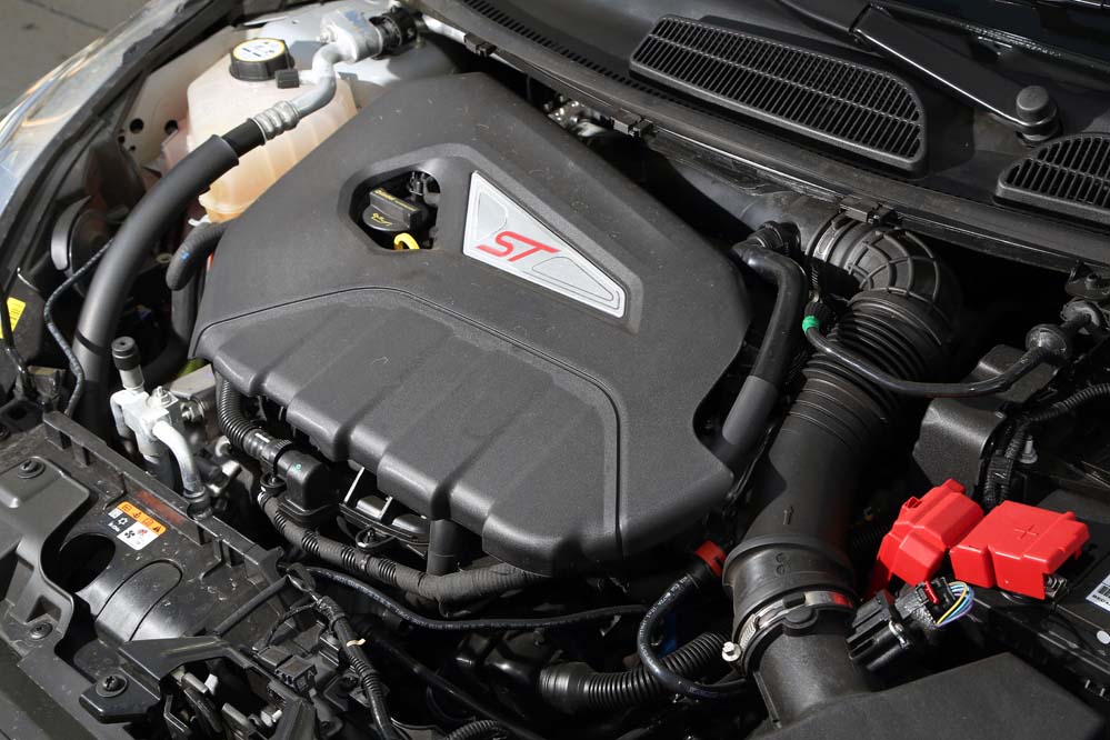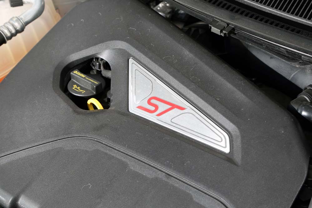 En marcha es un auténtico proyectil. Acelera de forma vertiginosa sin la necesidad de esa ‘patada’ que sí ofrecen la mayoría de sus contrincantes turboalimentados, aunque sí se nota mayor empuje desde las 2.500 rpm y hasta el corte. No pierde tracción y esa celeridad viene acompañada de un sonido embriagador y muy conseguido que se filtra en el habitáculo gracias a un conducto que va desde la admisión al interior y que Ford denomina Sound Symposer. Esa sinfonía tan adictiva es aguda cuando se da gas en marchas largas y en revoluciones bajas y se va incrementando a medida que la aguja escala el velocímetro. Pero si adictivo es el sonido del motor y del escape, no menos embriagador es el de la válvula de descarga del turbo.