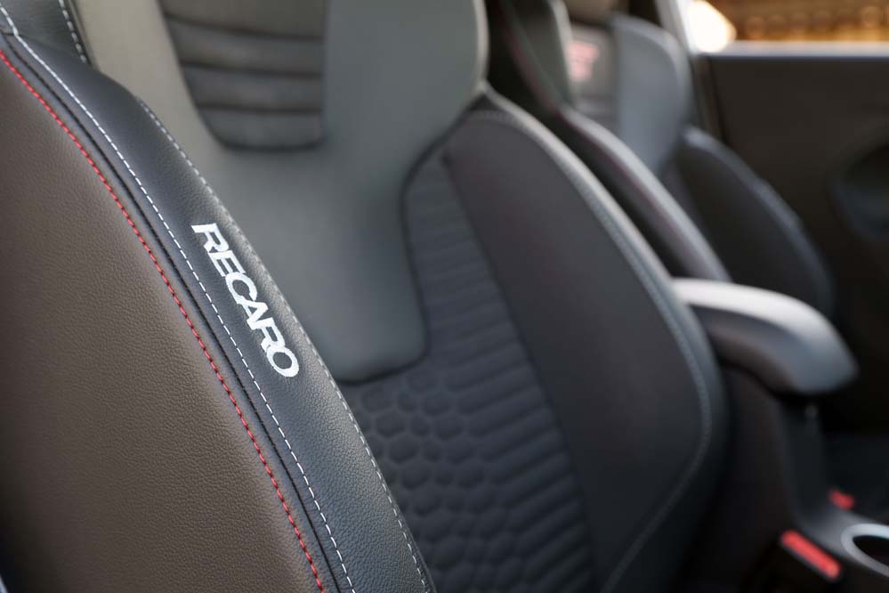 Pero como ocurre con los huevos Kinder, lo mejor está escondido en el interior, aunque no en el habitáculo, porque excepto la chapa con el anagrama ‘ST200’ en la parte baja de la consola y los flancos de los cinturones de seguridad en gris, tampoco hallo grandes diferencias. Los asientos, firmados por Recaro, también son los mismos, cosa que agradezco por su forma de sujetar el cuerpo, su comodidad a bordo y la facilidad con la que me permiten entrar y salir del coche, características que merecen ser destacadas. También el volante, que por su grosor y diámetro me parece perfecto para dirigir este ‘misil’ de 200 CV, y sin la molesta ‘necesidad’ de estar achatado en su parte inferior.