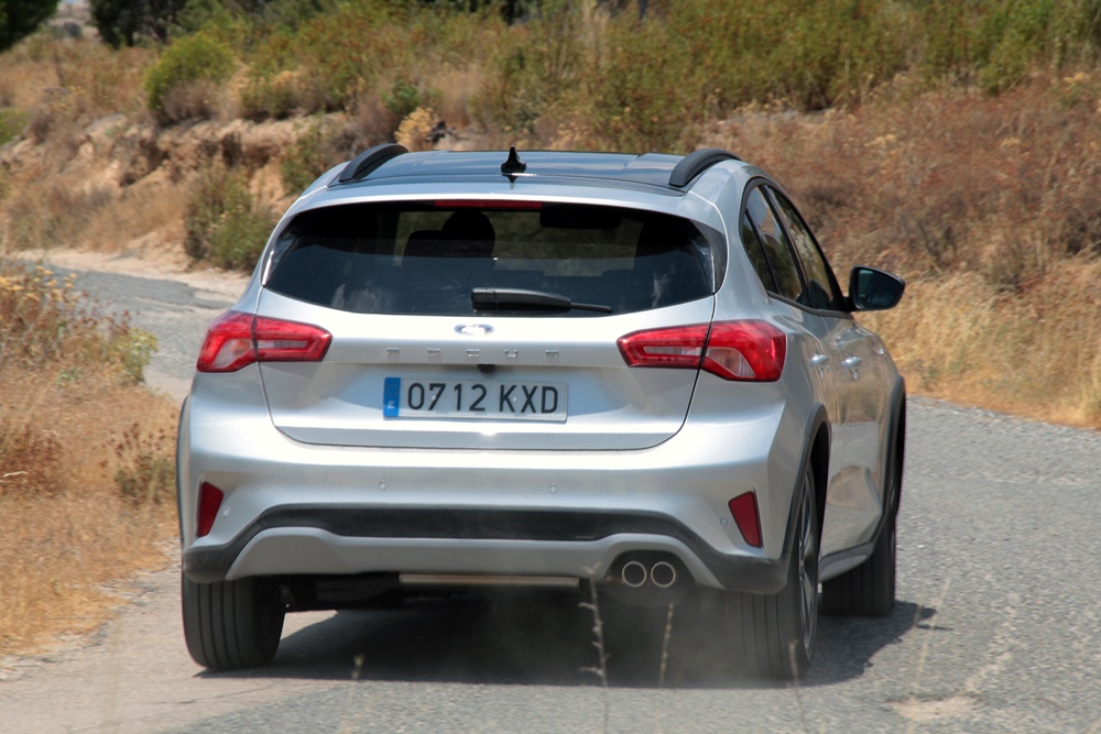 Esta debilidad cuando le exigimos en curva al Ford Focus Active se vuelve una fortaleza debido a los niveles de confort en carretera y viajes largos por autopista que proporciona. También es un punto a su favor –especialmente los más de 3 cm de altura extra- cuando nos adentramos en pistas de tierra o piedras. No equipa tracción a las cuatro ruedas ni neumáticos todoterreno, pero el Focus Active es ese vehículo pensado para un conductor que esporádicamente se aventura fuera de la carretera, donde no debería encontrar ningún obstáculo que no pueda superar (sin llegar a ser un todoterreno).
