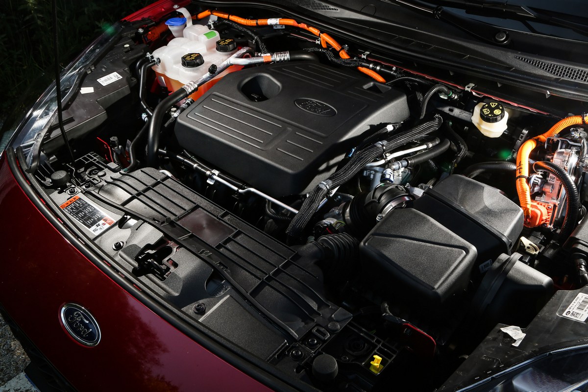 En el caso del Ford Kuga PHEV ST Line X de la prueba, el sistema está compuesto por un motor de cuatro cilindros en línea de gasolina de 2,5 litros de ciclo Atkinson y un motor/generador eléctrico. El primero produce una potencia máxima de 152 CV mientras que el segundo entrega otros 132 CV. De esta forma, la potencia total combinada (que no es la suma de esas dos cifras) alcanza unos llamativos 225 CV. La tracción es siempre a las ruedas delanteras y monta una caja de cambios automática con una única velocidad.