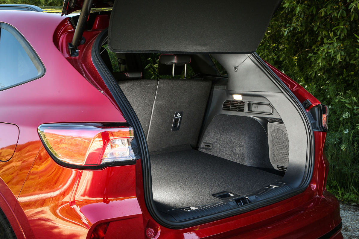 Por ejemplo, la capacidad del maletero me parece justa para un coche de sus dimensiones y más en comparación con un Kuga normal, pues la altura útil disponible se reduce notablemente. El peso es otro de los hándicap de este SUV, ya que aunque con la plataforma C2 las variantes normales son más ligeras que sus predecesores equivalentes, este PHEV se va hasta los 1.844 kilogramos en orden de marcha. Es decir, es 280 kilogramos más pesado que un Kuga con motor EcoBoost de gasolina de 150 CV.