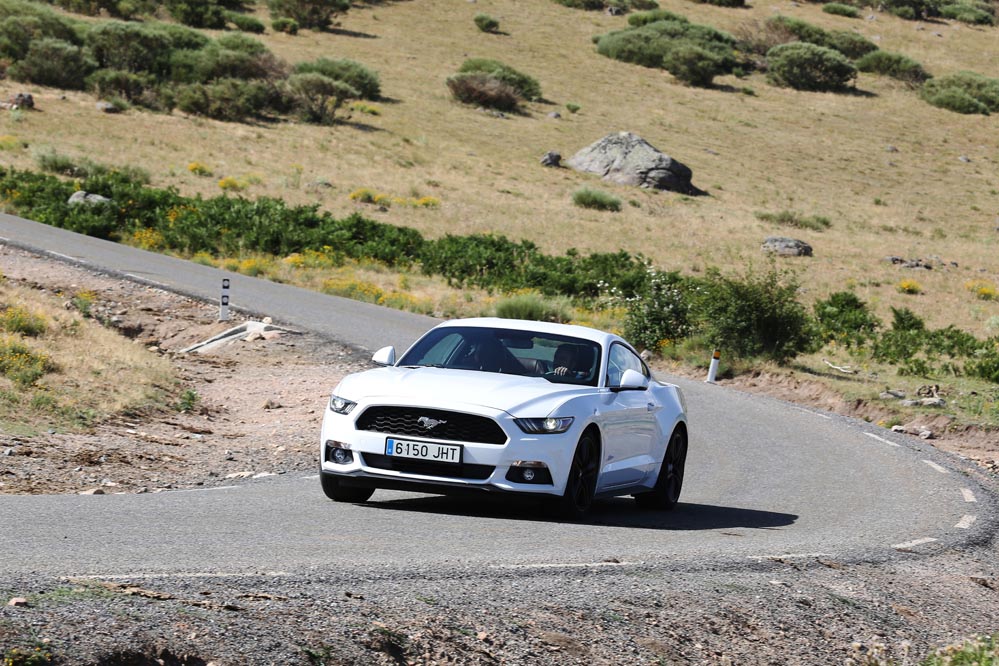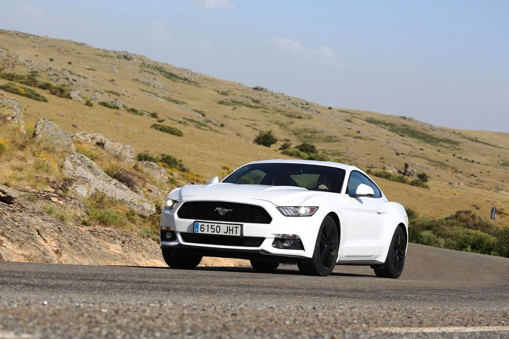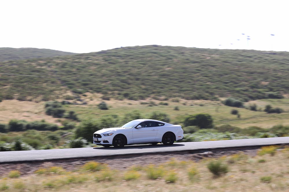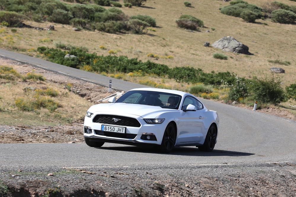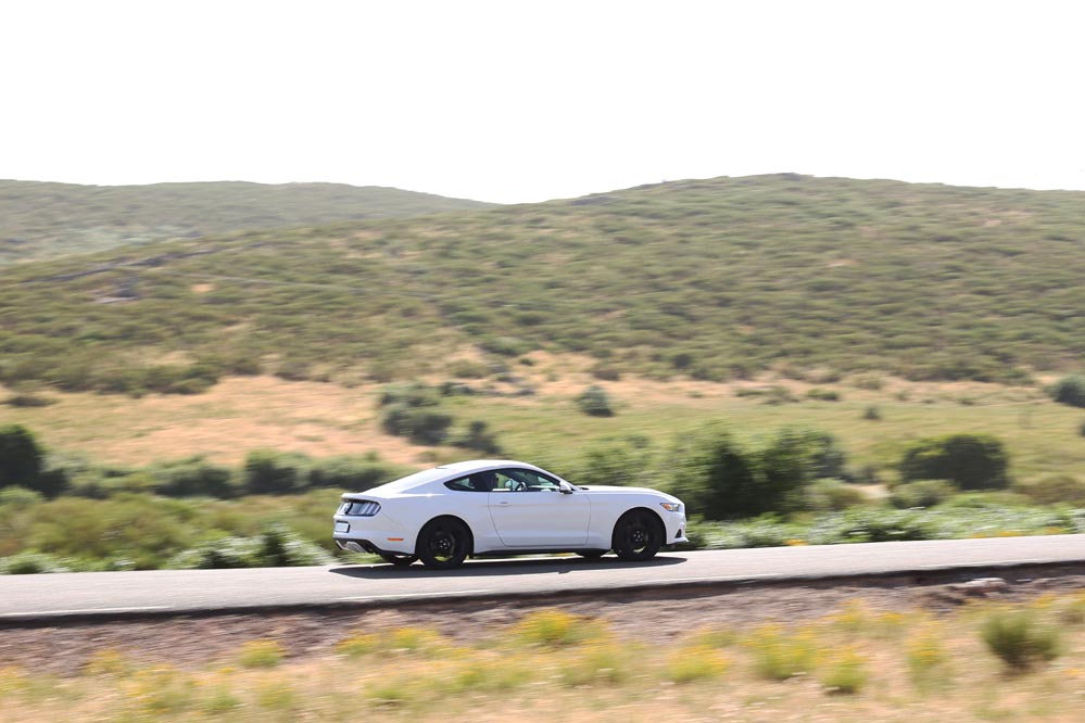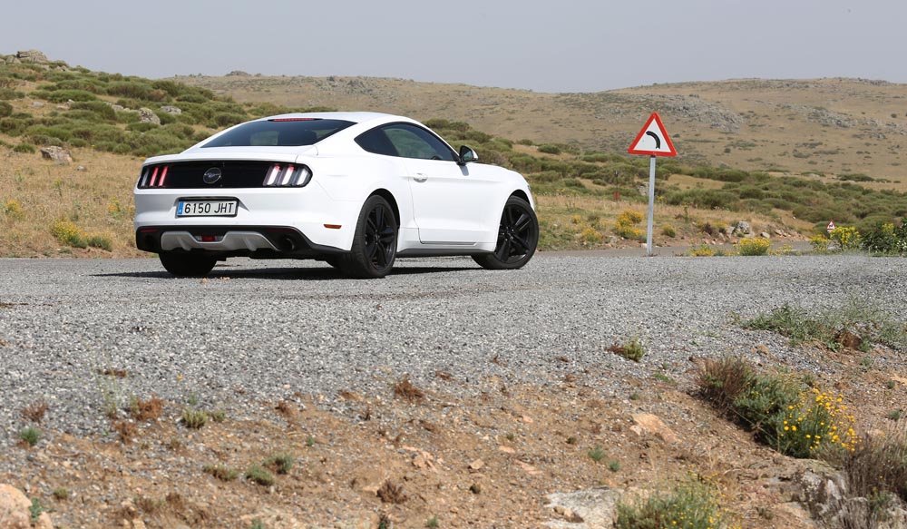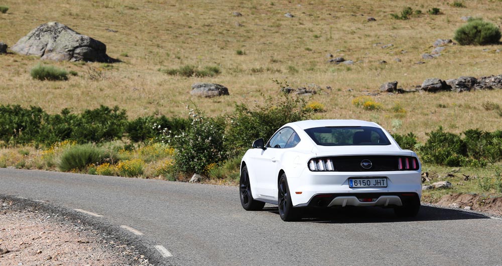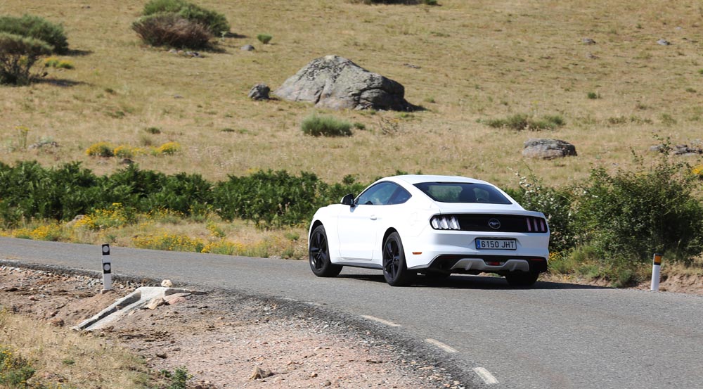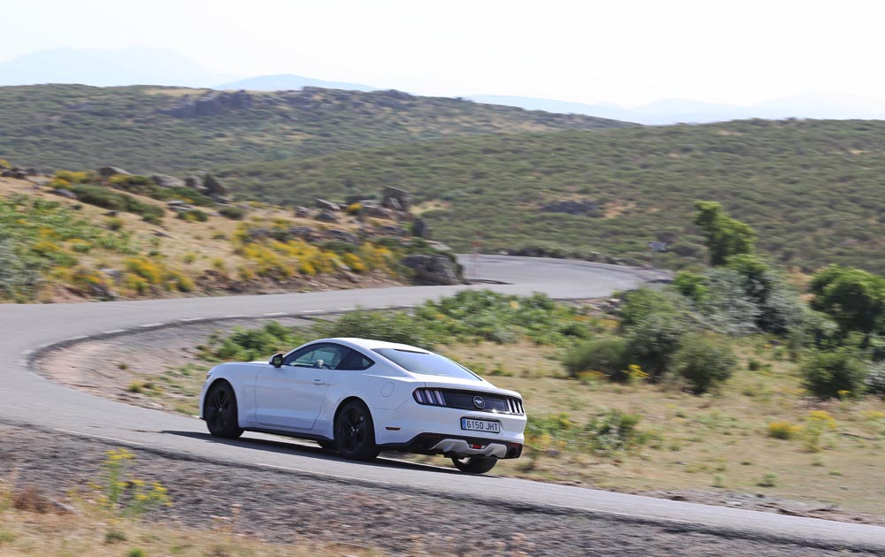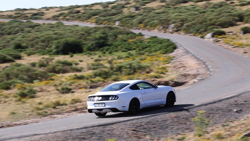 En movimiento es cuando compruebo que el bloque EcoBoost de cuatro cilindros es una gran opción, y más para el mercado Europeo. Tiene una respuesta rabiosa desde bajas vueltas que empieza a incrementarse a medida que la aguja pasa de las 2.700 rpm. Pero a 3.000 vueltas es cuando entrega todo su par: unos más que destacables 432 Nm. La potencia máxima la deja para 5.500 rpm, 1.000 antes del corte de inyección. Lo mejor de todo es que a esa buena respuesta, a ese buen comportamiento le acompaña un consumo medio de 9,5 litros, un litro y medio más del oficial, cifra que aún así me sigue pareciendo realmente buena para tratarse de un vehículo de 1.655 kilogramos y 317 CV de potencia.