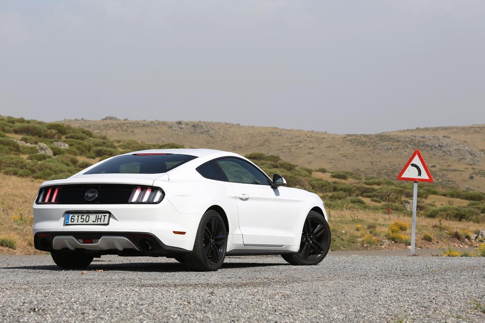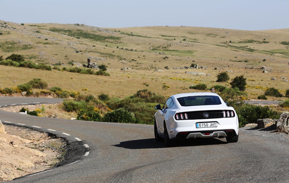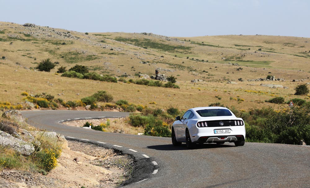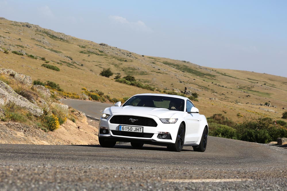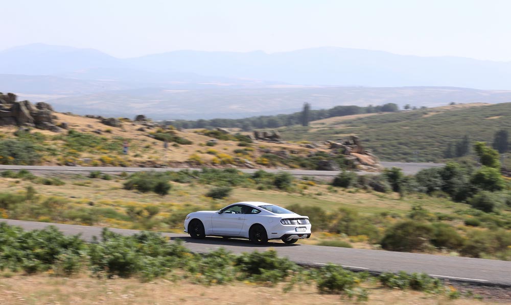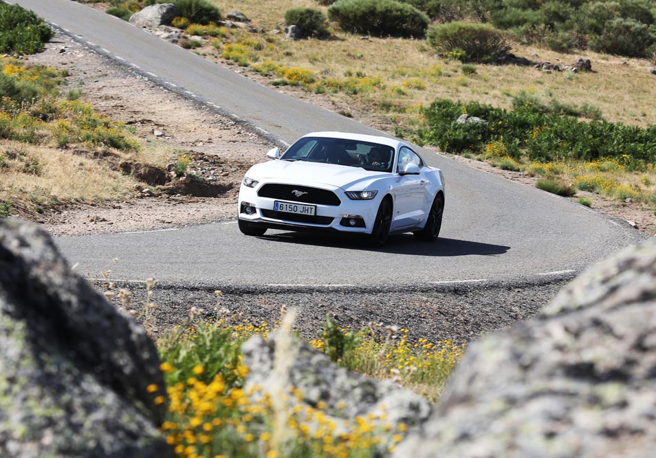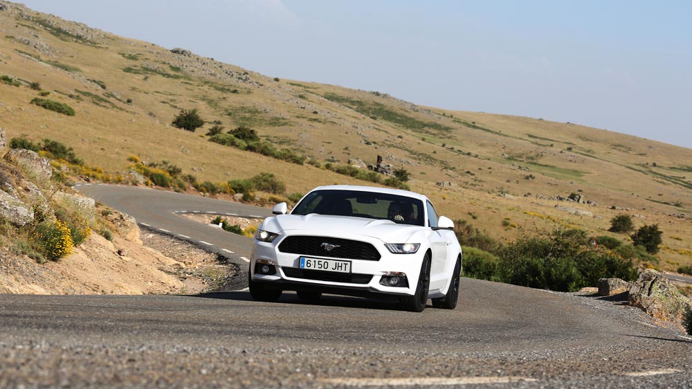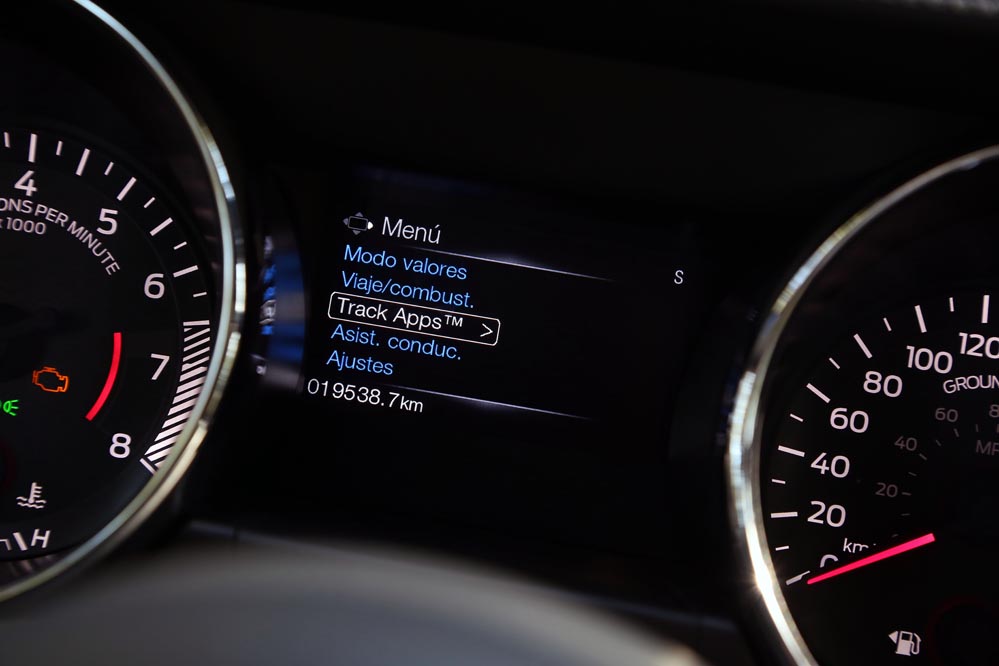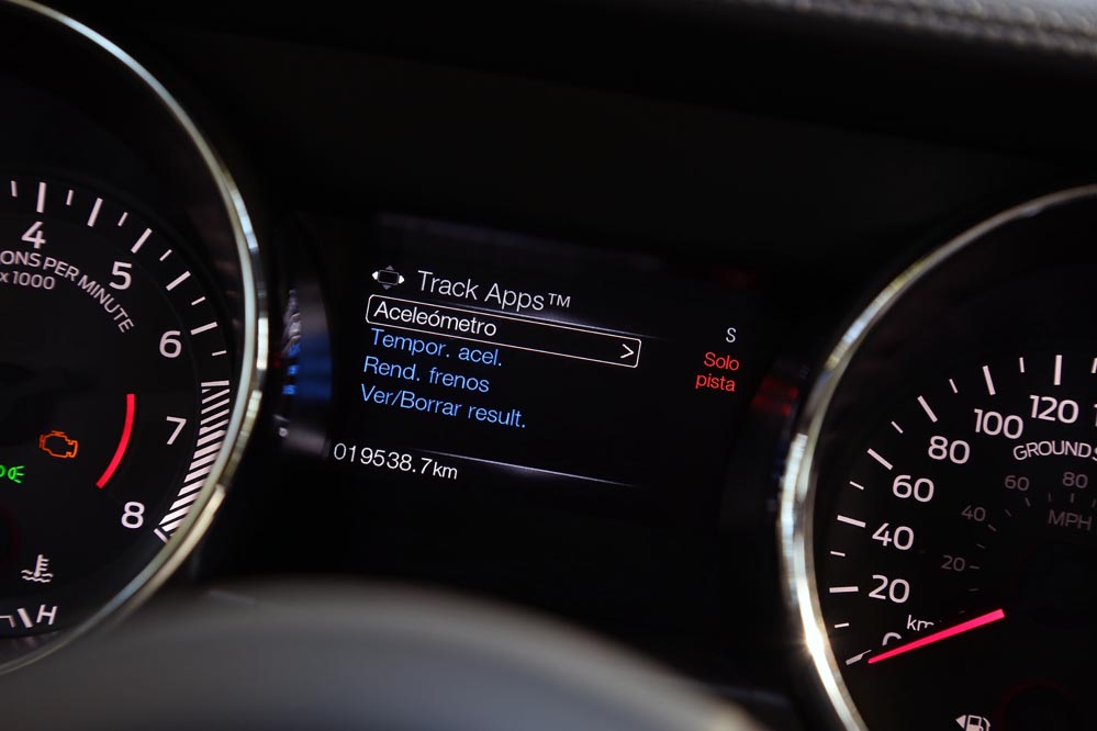 En movimiento es cuando compruebo que el bloque EcoBoost de cuatro cilindros es una gran opción, y más para el mercado Europeo. Tiene una respuesta rabiosa desde bajas vueltas que empieza a incrementarse a medida que la aguja pasa de las 2.700 rpm. Pero a 3.000 vueltas es cuando entrega todo su par: unos más que destacables 432 Nm. La potencia máxima la deja para 5.500 rpm, 1.000 antes del corte de inyección. Lo mejor de todo es que a esa buena respuesta, a ese buen comportamiento le acompaña un consumo medio de 9,5 litros, un litro y medio más del oficial, cifra que aún así me sigue pareciendo realmente buena para tratarse de un vehículo de 1.655 kilogramos y 317 CV de potencia.