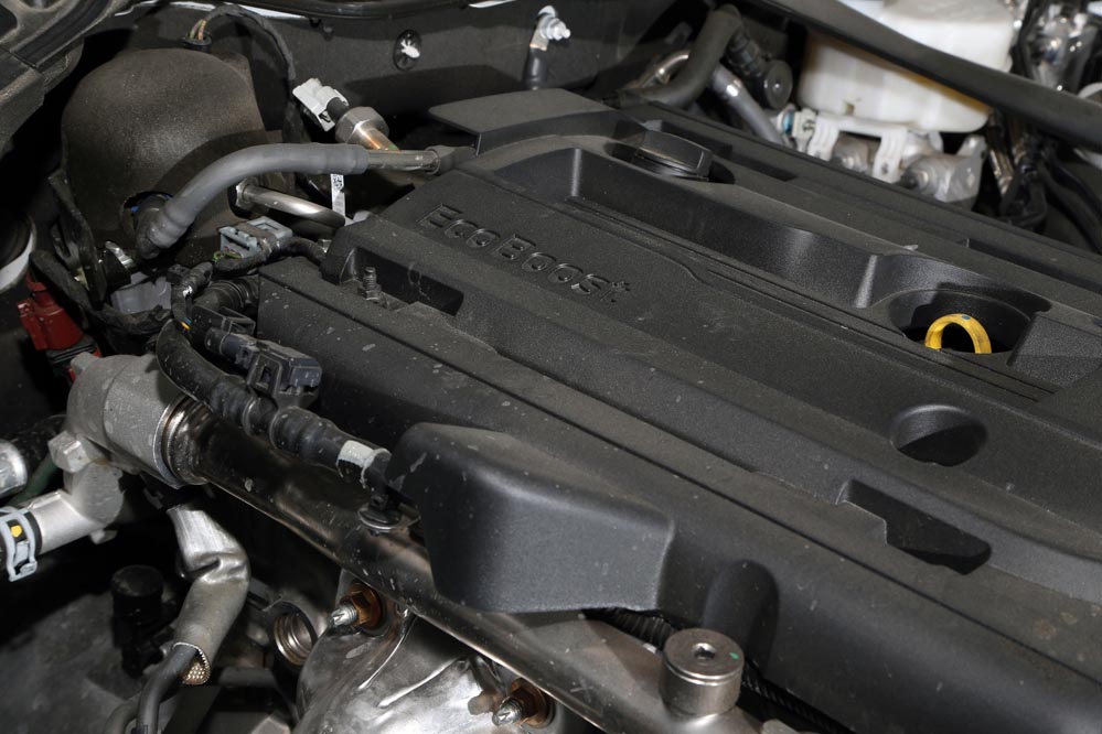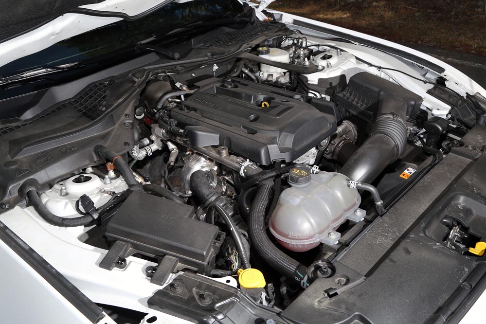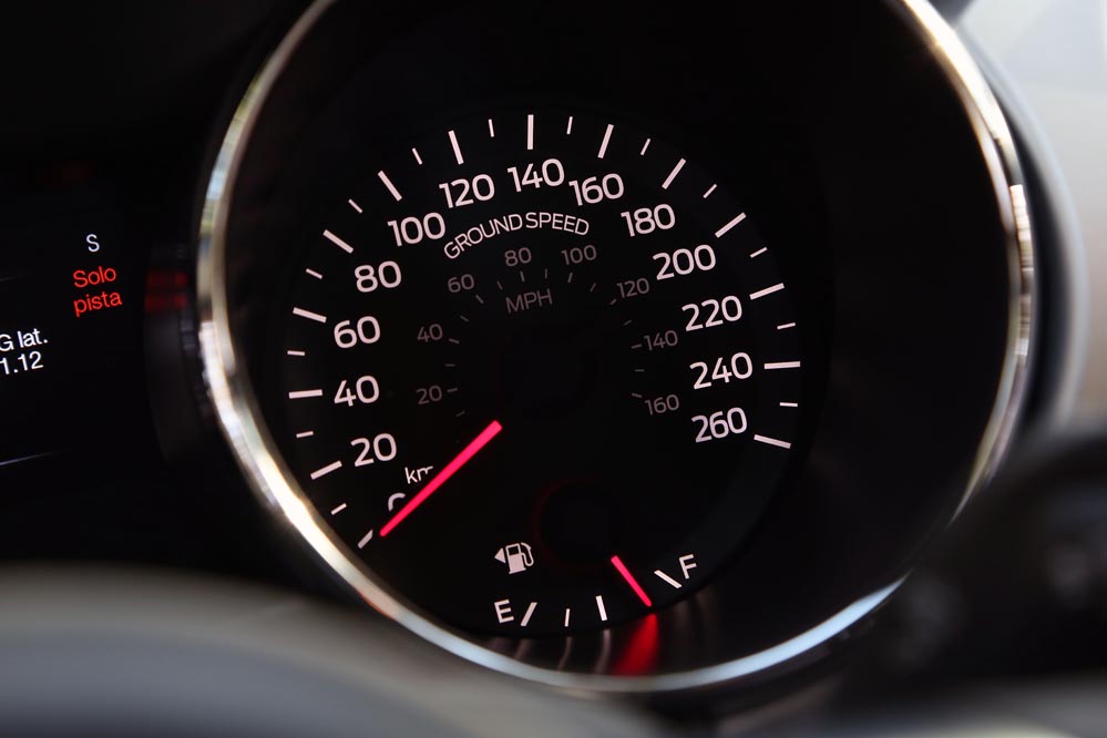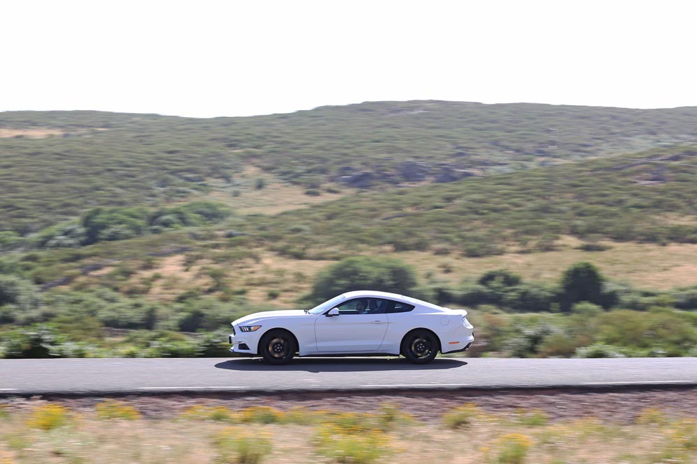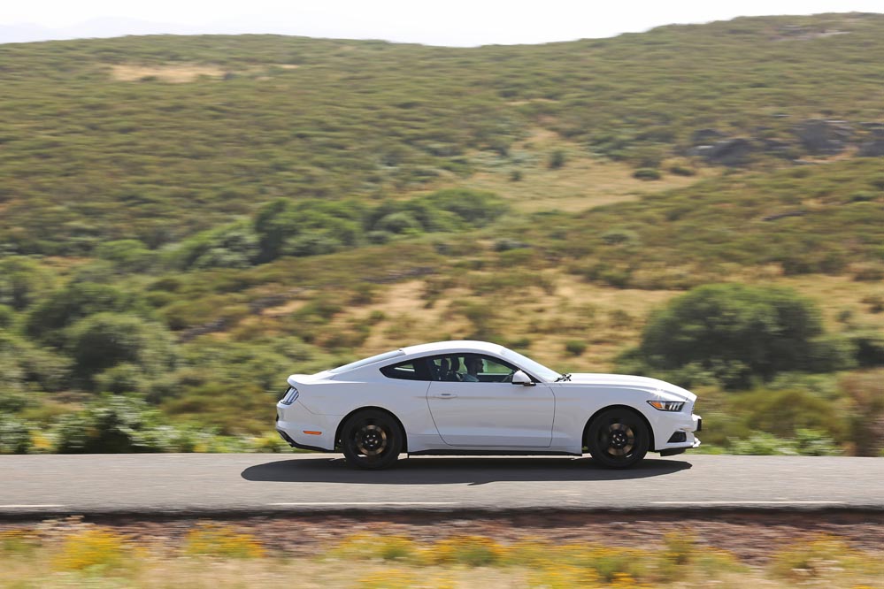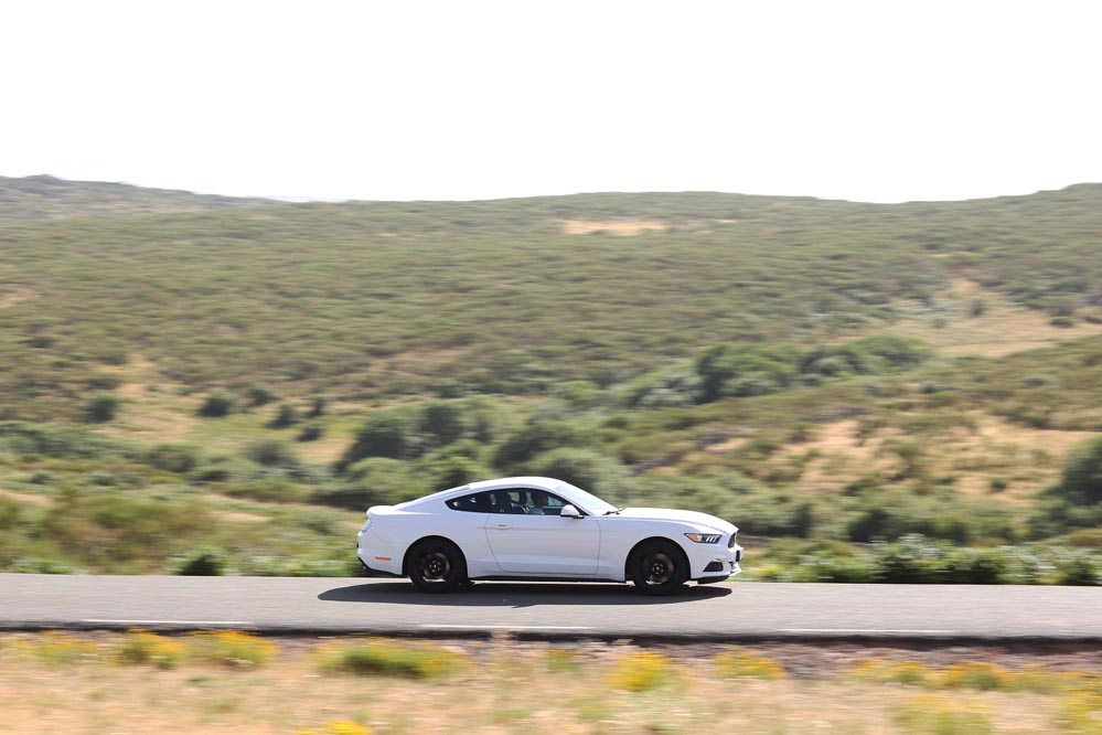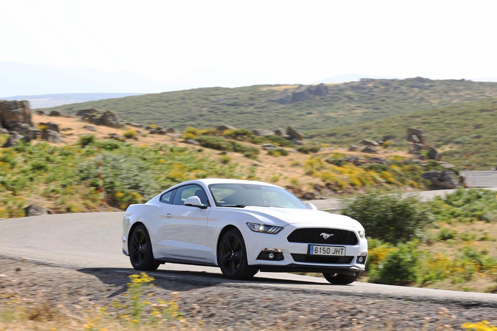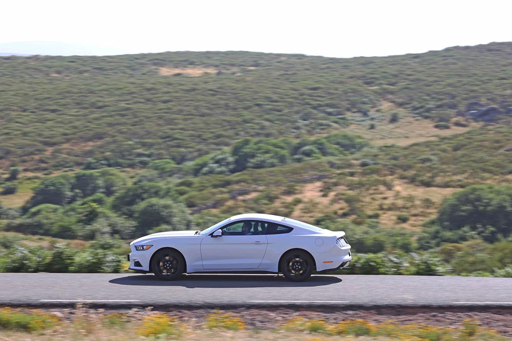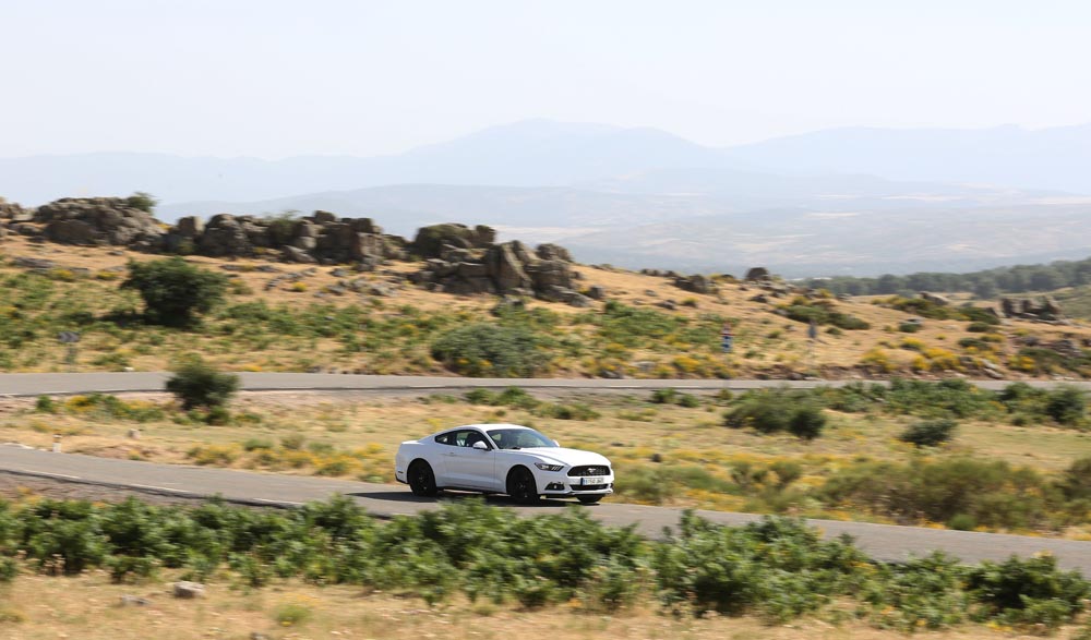En movimiento es cuando compruebo que el bloque EcoBoost de cuatro cilindros es una gran opción, y más para el mercado Europeo. Tiene una respuesta rabiosa desde bajas vueltas que empieza a incrementarse a medida que la aguja pasa de las 2.700 rpm. Pero a 3.000 vueltas es cuando entrega todo su par: unos más que destacables 432 Nm. La potencia máxima la deja para 5.500 rpm, 1.000 antes del corte de inyección. Lo mejor de todo es que a esa buena respuesta, a ese buen comportamiento le acompaña un consumo medio de 9,5 litros, un litro y medio más del oficial, cifra que aún así me sigue pareciendo realmente buena para tratarse de un vehículo de 1.655 kilogramos y 317 CV de potencia.