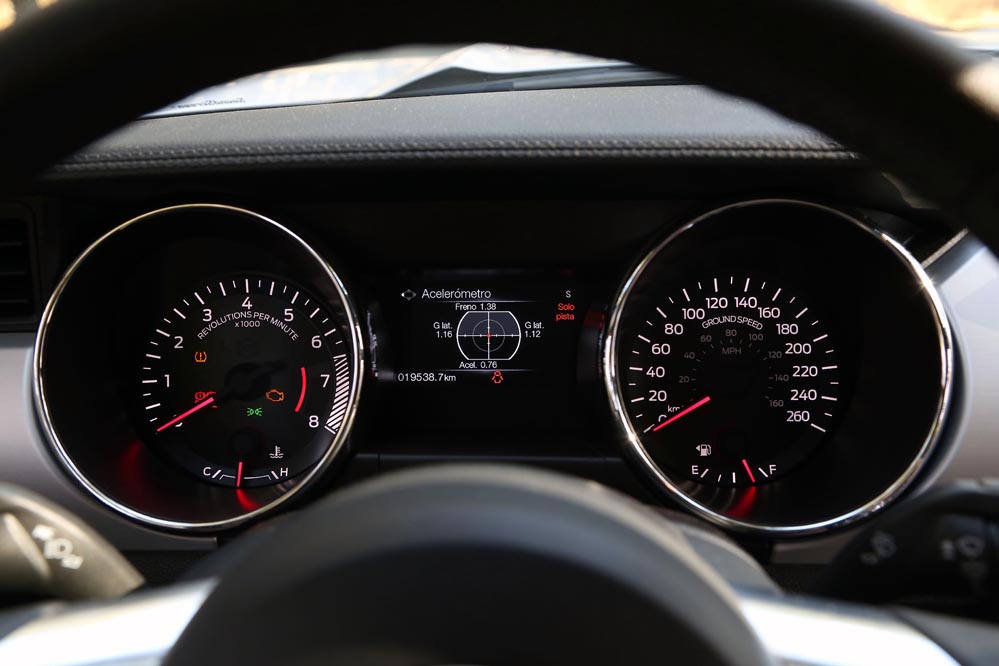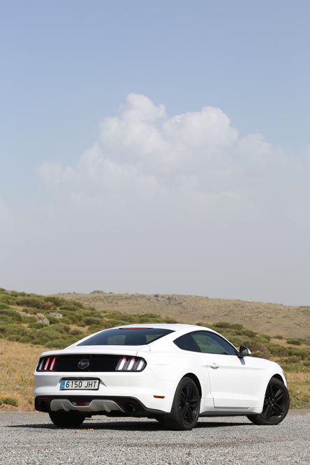 Y es que el dinero a desembolsar es otro de sus puntos a favor, quizá el mejor para decantarte por este icono mundial. El Ford Mustang 2015 2.3 EcoBoost de la prueba está disponible desde solo 39.500 euros, cifra que desconocía algún que otro conductor que al verme al volante negaba con la cabeza, como si no me pudiese permitir un vehículo de este tipo. Lo que tampoco sabían es que viene con un completo equipamiento de serie que deja en paños menores a sus oponentes. No tendrás que pagar nada por la tapicería de cuero, el climatizador automático bizona, el sistema de conectividad SYNC2 con pantalla táctil de 8”, el sistema de sonido con nueve altavoces y amplificador, los faros antiniebla delanteros LED, delanteros de Xenón HID y traseros LED, las llantas de aleación de 19” en negro, el escape doble cromado, las ‘Track Apps’ o la iluminación ambiental, que está disponible en siete colores, porque todo lo incluye con el precio base.