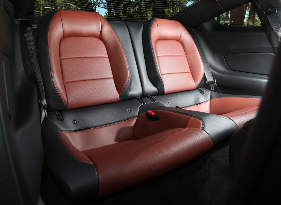 Antes de dar vida a su bloque, salto, y nunca mejor dicho, a las plazas traseras. El acceso es engorroso porque, aunque muevas la banqueta para adelante, acción que se realiza de forma eléctrica, cosa que no es muy recomendable si pecas de impaciencia, el hueco que queda no es amplio. Por si fuese poco dificulta la acción el cinturón de seguridad. Después de superado estos escollos, mi cuerpo se acomoda en los asientos posteriores, que presumen de buen apoyo lumbar, pero no de espacio ni para las piernas, ni para la cabeza. Descubro que en la versión convertible, la cual pude probar por EEUU una semana antes, tiene más espacio en altura y eso se debe a que la caída de la capota es menos pronunciada que en el Fastback.