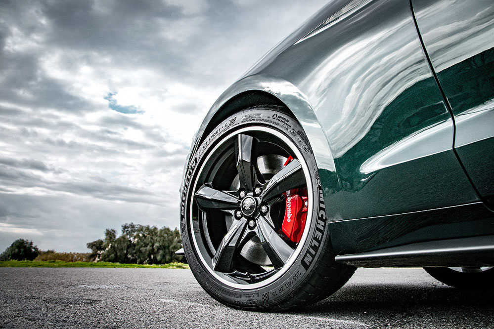 Según me han comentado en Ford, la luna posterior tiene las mismas dimensiones que el Mustang Fastback del 68. Asimismo, la zaga equipa una placa con el nombre Bullitt, sustituyendo al 'pony' o a las letras GT, dependiendo de la versión. Los escapes también han sido modificados, siendo únicos en la gama: han intentado ocultarlos al máximo… No así el sonido, porque ¡cómo suena! Lo que ha incorporado sin seguir el guión son las pinzas en color rojo, algo que le da mayor deportividad al conjunto.