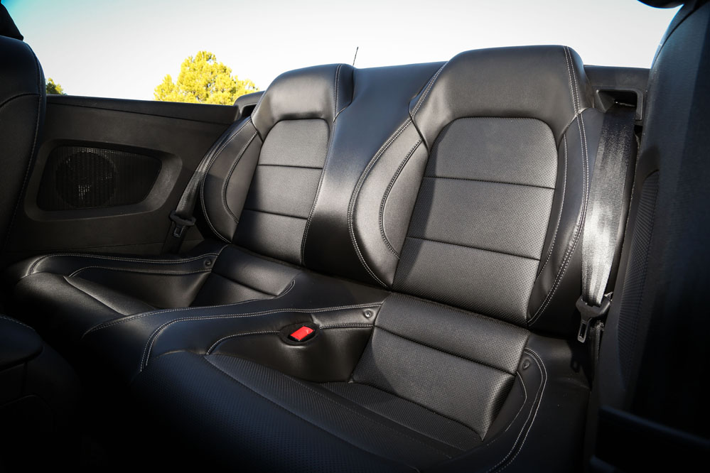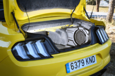 Como buen modelo americano este Ford Mustang también tiene sus cosas. Por ejemplo, el sistema de plegado de la capota: primera giras un agarrador manual que desbloquea el techo y luego, el botón para plegarlo. Hasta ahí bien, pero cuando el techo está completamente plegado, se queda un antiestético hueco en cada uno de los lados del coche que permite ver el mecanismo del citado techo. ¿Cuál ha sido la solución? Pues llevar en el maletero dos molduras de plástico que el conductor tiene que poner de forma manual. No me imagino yo a muchos propietarios haciendo esto, la verdad… El lado bueno es que, para ser un descapotable, el maletero tiene una capacidad razonable (unos 332 litros) y relativamente aprovechable.