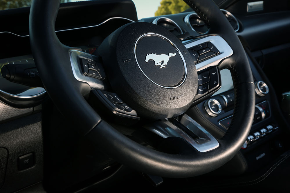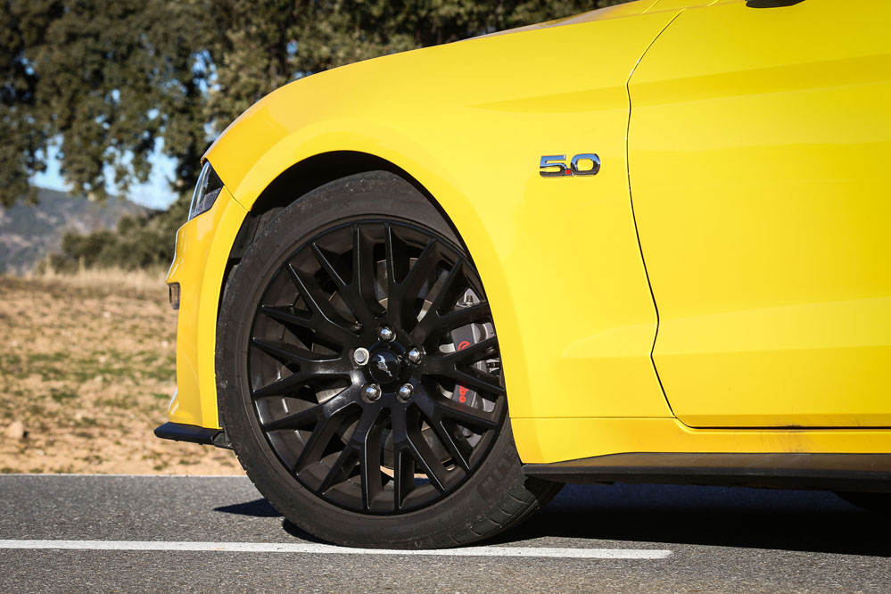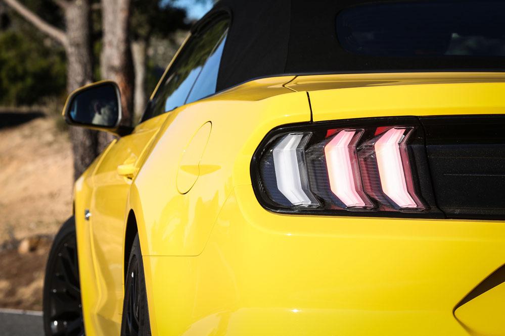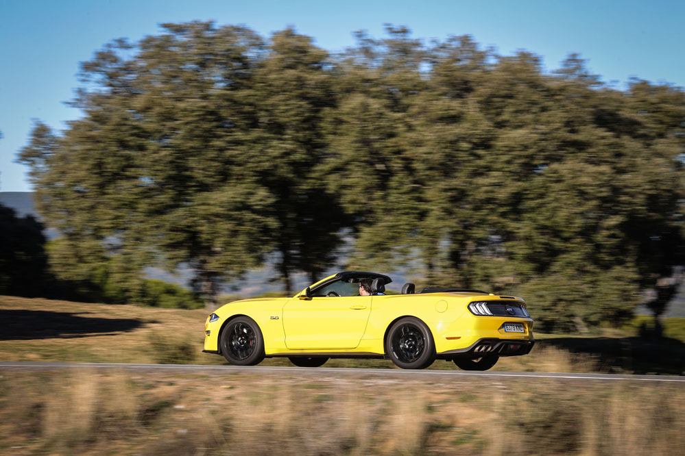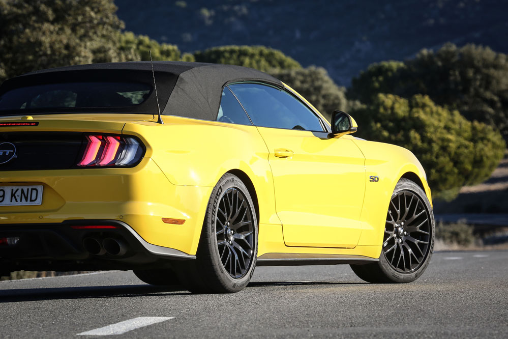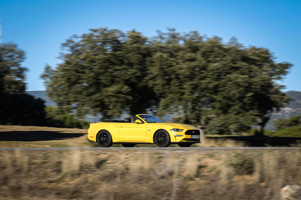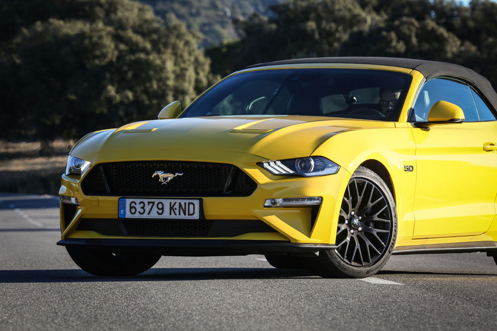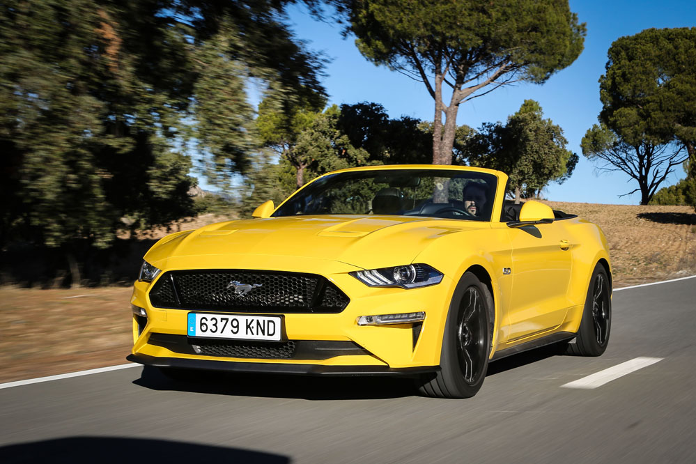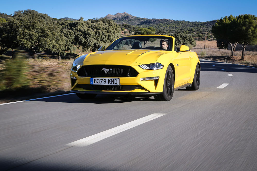 Pues esta vez, un servidor ha tenido el honor de ser el conductor de esa estela amarilla, de probar el Ford Mustang Convertible GT 5.0 Ti-VCT V8. Viene en formato descapotable con cambio automático de 10 velocidades y, lo que es más importante, un carismático motor V8 de 450 CV que pondría los pelos de punta a la mismísima Carmena y su Madrid Central.