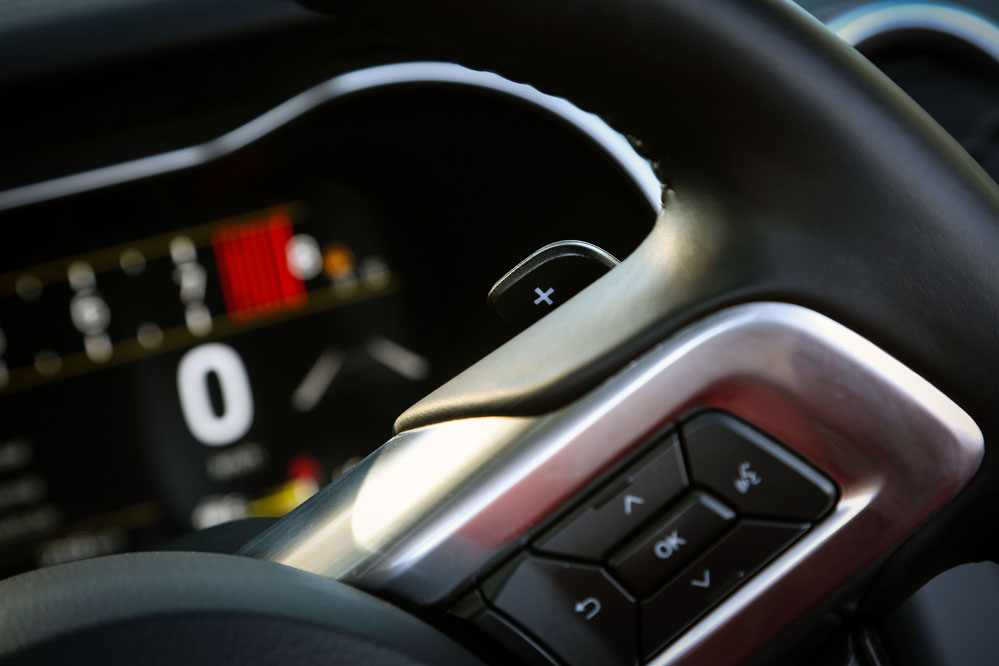 Normalmente tiendo un poco hacia el “racaneo”, si me permites la expresión, y apuro el consumo para ahorrar unos euros. Pero con este coche es imposible. Bueno, no es que sea imposible, es que sinceramente no me apetece. El sonido que emiten las dos salidas de escape dobles en modo Sport es tan adictivo que pisas el acelerador por el puro placer de escucharlo. Es verdad que el cambio automático de 10 marchas con levas al volante no es lo más rápido del mundo, pero, aun así, la elasticidad y progresividad del motor es tan notable que lo puedes perdonar. Esa sensación está años luz de los actuales motores empequeñecidos y turboalimentados: metafóricamente, es como salir del atasco y perderte directamente en una carretera secundaria de la Ruta 66 camino a Las Vegas.