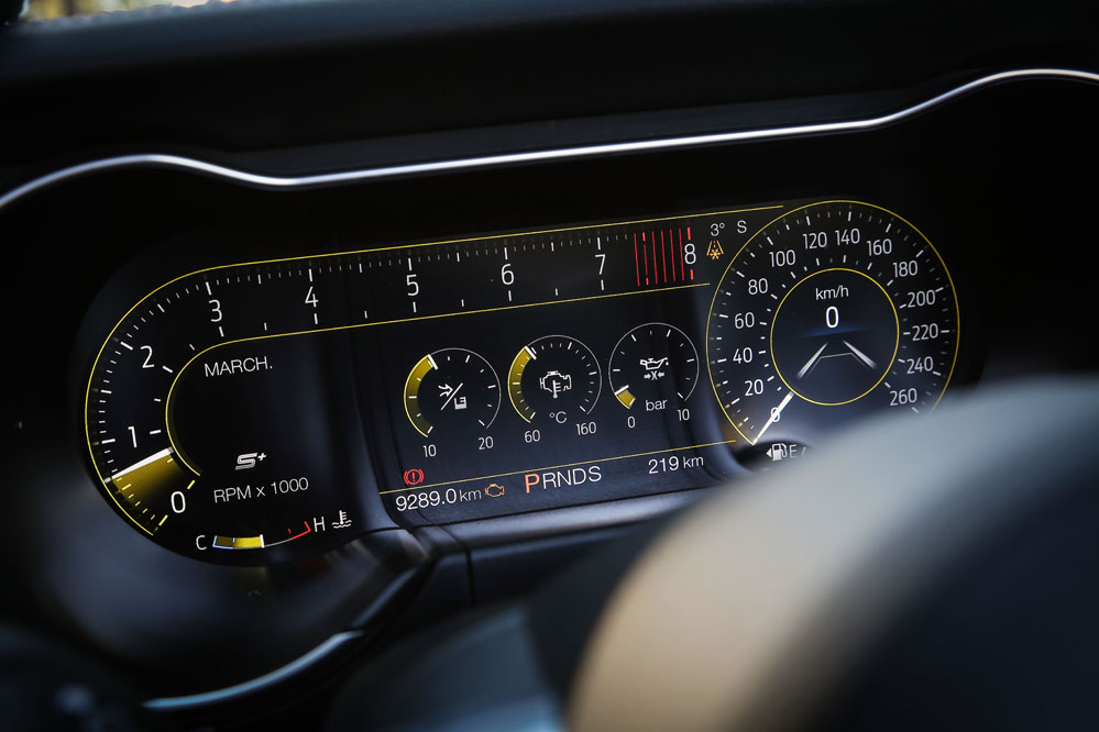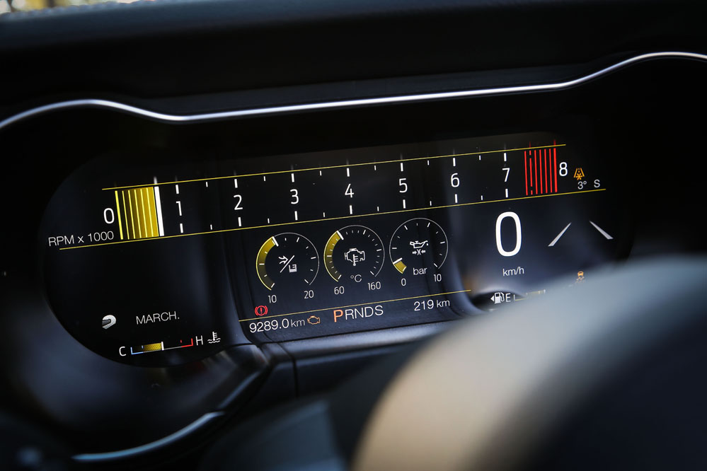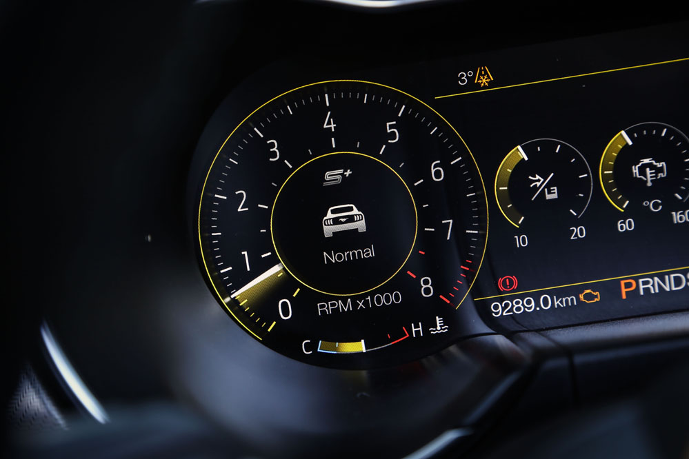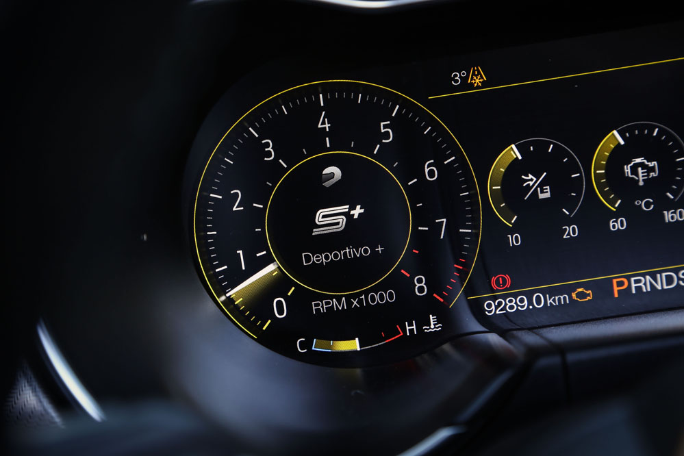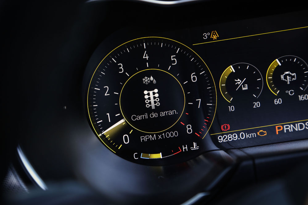 Es verdad que sus dimensiones son generosas, sobre todo en anchura, y que, dinámicamente, no está a la altura de los elitistas deportivos europeos, pero esa no es su proposición de valor. Su objetivo es ofrecer diversión sin descanso al conductor y para ello no duda en tirar también de opciones más tecnológicas: por ejemplo, el sistema Line Lock que bloquea los frenos delanteros para permitir derrapar con las gomas traseras. Al principio puedes pensar que es poligonero, pero he visto a verdaderos gentlemen perder las formas mientras observan el espectáculo que resulta quemar las ruedas traseras 275/40 R19. Otro de los ganchos tecnológicos de este Mustang versión 2018 es el Launch Control, un sistema pensado para obtener las mejores aceleraciones desde parado.