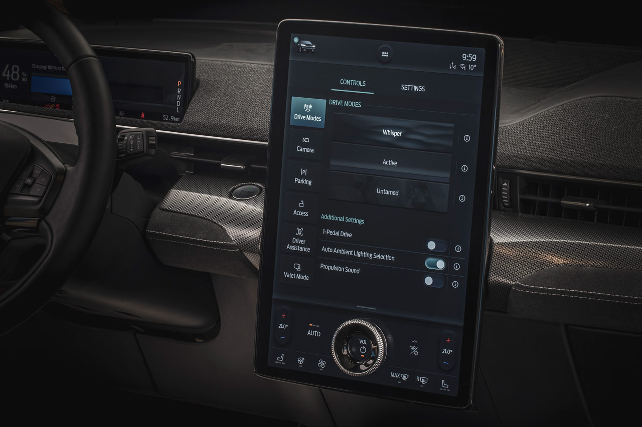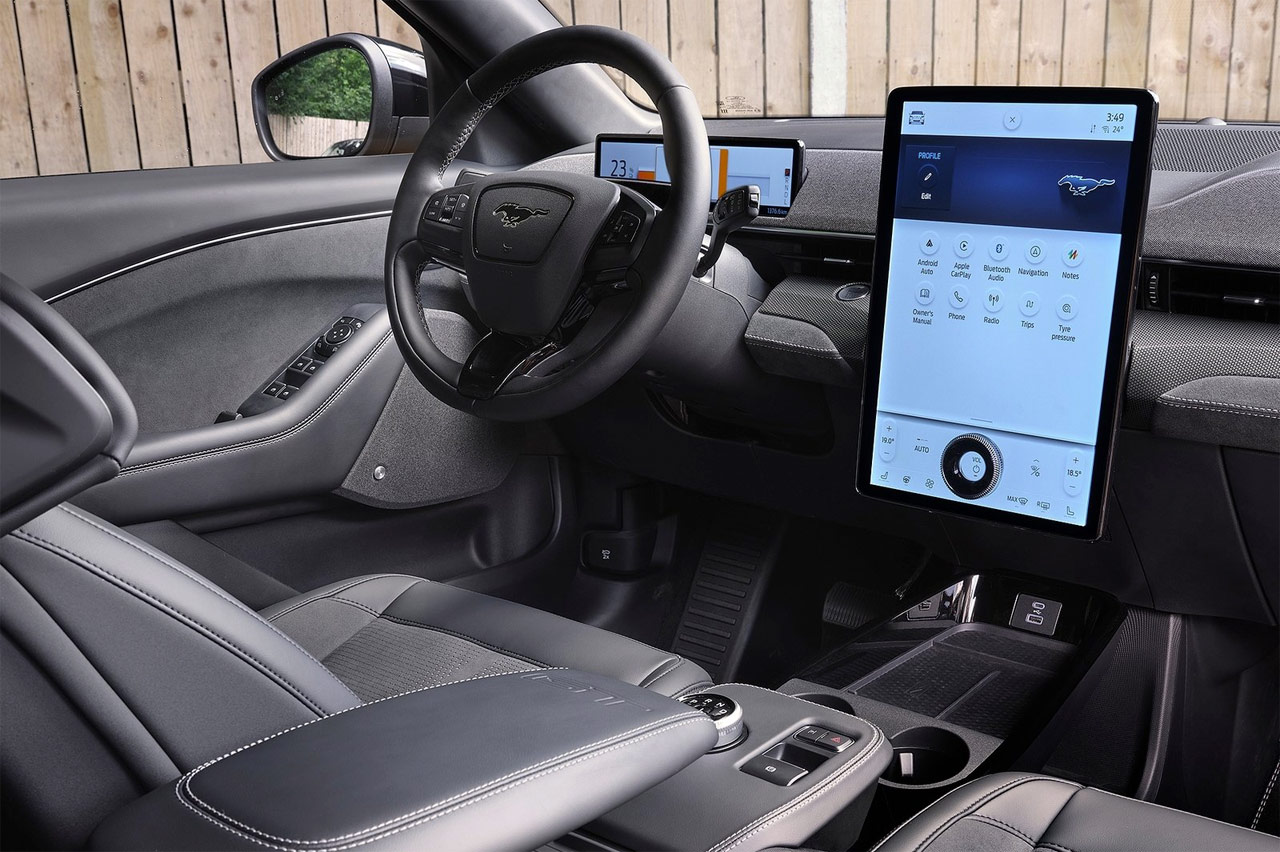 Los elementos de confort incluyen un sistema de sonido B&O de 10 altavoces y 560 W, además de tecnología de portón trasero manos libres. En lo que se refiere a tecnologías avanzadas de asistencia al conductor, el Mustang Mch-E GT ofrece el Control de Crucero Adaptativo Inteligente con Stop & Go y Centrado de Carril, el Sistema de Mantenimiento de Carril con Asistencia de Punto Ciego, el Asistente de Aparcamiento Activo 2.0 y el Asistente de Precolisión con Frenado de Emergencia Automático. Además el coche lleva airbag de rodilla, cámara de 360º, faros adaptativos LED, acceso sin llave mediante el teléfono o navegador con información de tráfico en tiempo real.