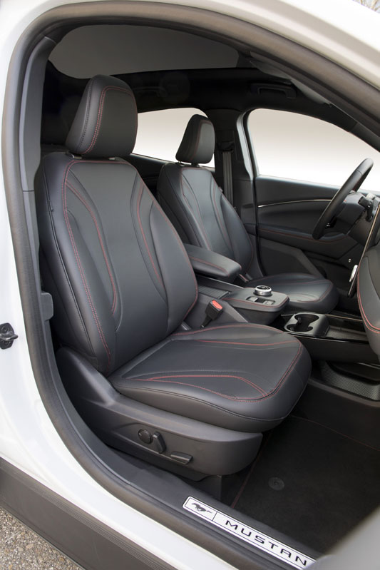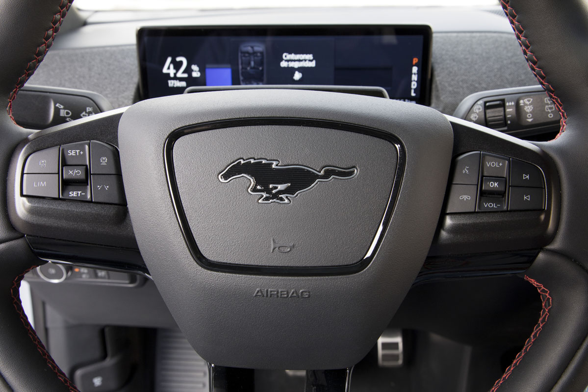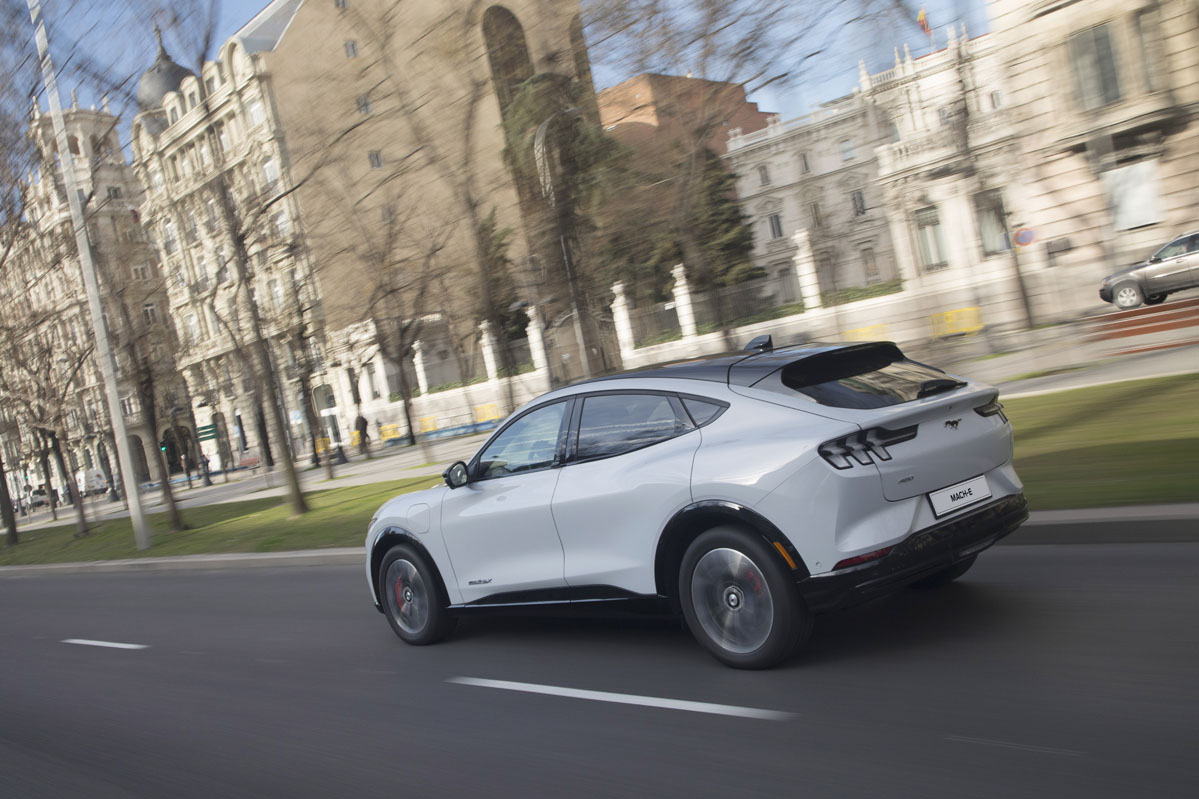 Como con sus múltiples coches de combustión, y tras realizar la prueba del Ford Mustang eléctrico, la firma norteamericana ha conseguido un buen equilibrio entre comodidad y deportividad. La suspensión filtra muy bien las irregularidades de la calzada, aunque sí que es cierto que en firme muy bacheado es algo rebotona. Por ello, por la autonomía, por el maletero y por lo bien insonorizado que está su habitáculo es un buen coche para viajar. De los pocos eléctricos del mercado. Además, acompaña una dirección precisa, de buen tacto, y eso que es eléctrica, aunque no muy comunicativa.