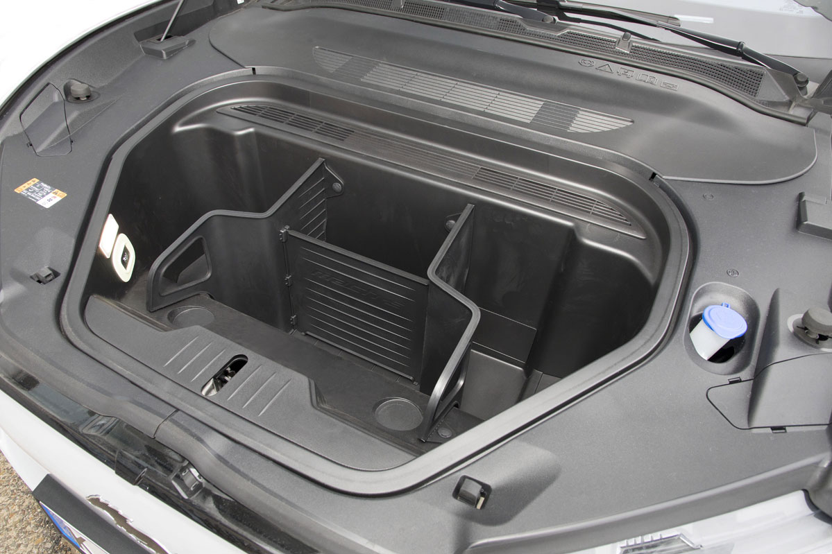 Esta versión ofrece hasta 540 km de autonomía (WLTP), por lo que debería brindar un espacio de carga considerable. Así es: 402 litros en el maletero trasero de doble altura (1.420 con los respaldos abatidos) accesibles desde una boca de carga muy ancha y bastante baja. Suma 81 litros más en el delantero, espacio que, además, es drenable al tener un desagüe, como en el posterior del (prueba) Ford Puma 2020.