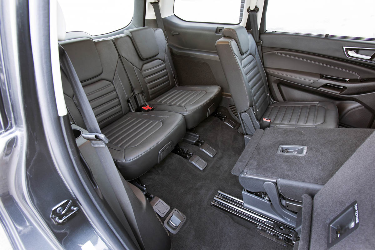 Pero si por algo destaca un monovolumen de las características y tamaño del S-Max Hybrid (mide 4,80 x 1,91 y 1,68 metros) es por lo que ofrece de puertas para dentro. Hablamos lógicamente de modularidad porque de serie incorpora siete asientos que son reales, es decir, que la tercera fila puede ser ocupada por dos adultos. En este sentido, los puntos clave del modelo siguen siendo la zona trasera desplazable en 15 cm, la posibilidad de montar tres sillas infantiles en sus tres butacas traseras o el hecho de poder abatir de manera eléctrica los asientos.