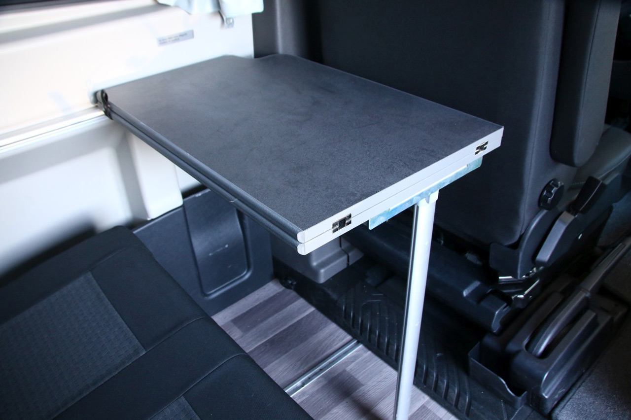 El puesto de conducción es idéntico al de las Transit Custom convencionales salvo por algún detalle, como el hueco portaobjetos que llevan las de pasajeros justo al lado de la palanca de cambios. Esta no lo lleva, principalmente para facilitar el paso desde los asientos delanteros a la parte trasera. También son diferentes los asientos, porque pueden girar 180 grados para crear así una cómoda zona de estar en combinación con la segunda fila de asientos y la mesa plegable y extensible que se ubica entre ambos.