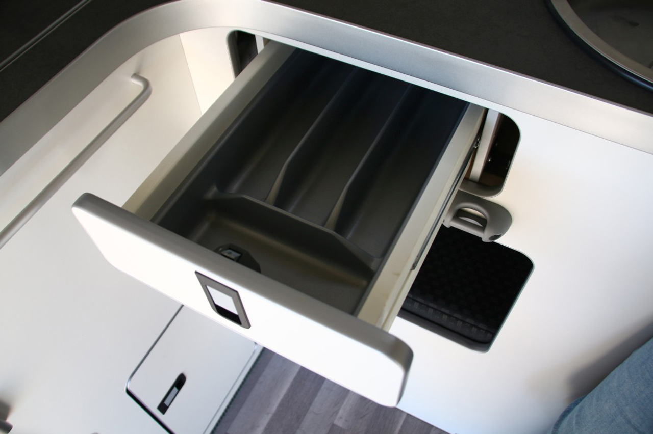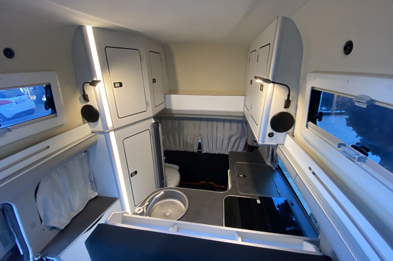 En cuanto a los aspectos más técnicos, el equipamiento de serie incluye un termo de 3 litros para agua sanitaria, una nevera eléctrica de 40 litros, un depósito de agua dulce de 42 litros, un depósito de aguas grises de 42 litros, un WC con depósito de aguas negras extraíble de 19 litros o una cocina de dos quemadores con un compartimento en la parte inferior para bombonas de gas de 2,8 kg, una ducha exterior o calefacción auxiliar de gasoil. Las baterías auxiliares que equipa de serie ofrecen capacidad suficiente como para pasar más de dos días completos con la nevera, la calefacción o las luces encendidas.