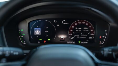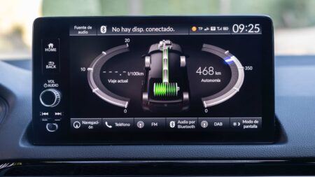 Y, por último, déjame que te hable de sus frenos. Como sabrás, los coches eléctricos y los híbridos tienen frenos regenerativos, por lo que el tacto del pedal no suele ser muy agradable porque, normalmente, al principio de ese recorrido no suele ejecutar la acción. Honda ha conseguido que la frenada sea natural y carezca de ese lag. Además, tiene tres niveles de retención, cosa que se agradece.