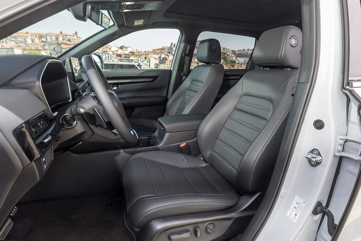El puesto de conducción destaca por su calidad, ergonomía y digitalización. Yendo por partes, el CR-V presenta materiales de primer nivel con ajustes perfectos en las zonas más críticas del coche. Los asientos delanteros son comodísimos y la mayor parte de los comandos está a nuestro alcance. Porque pese al monitor central que preside el salpicadero, Honda sigue apostando por mandos físicos para funciones como la climatización (con un ligero sonido cuando subimos o bajamos la temperatura) y que desde aquí aplaudimos.