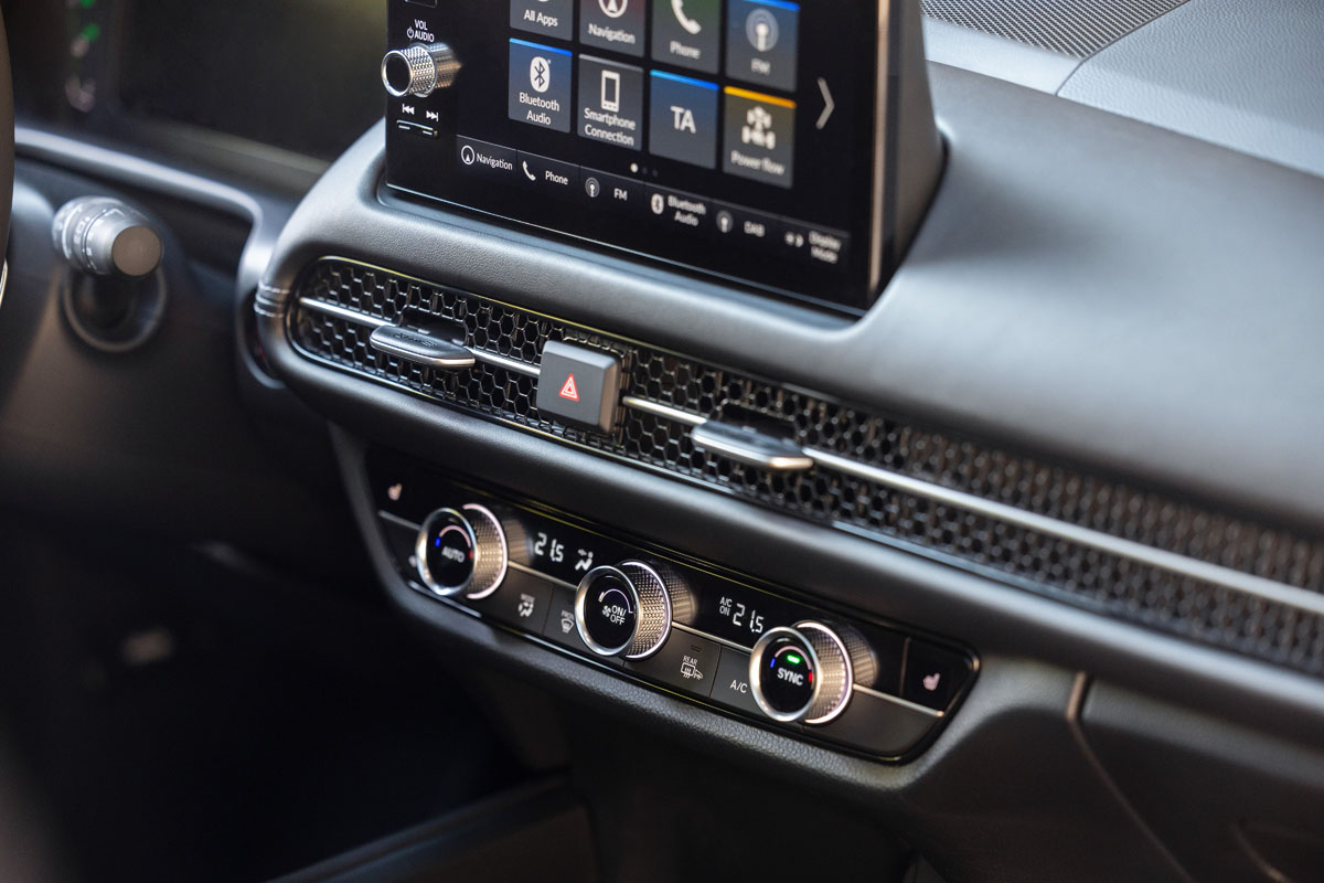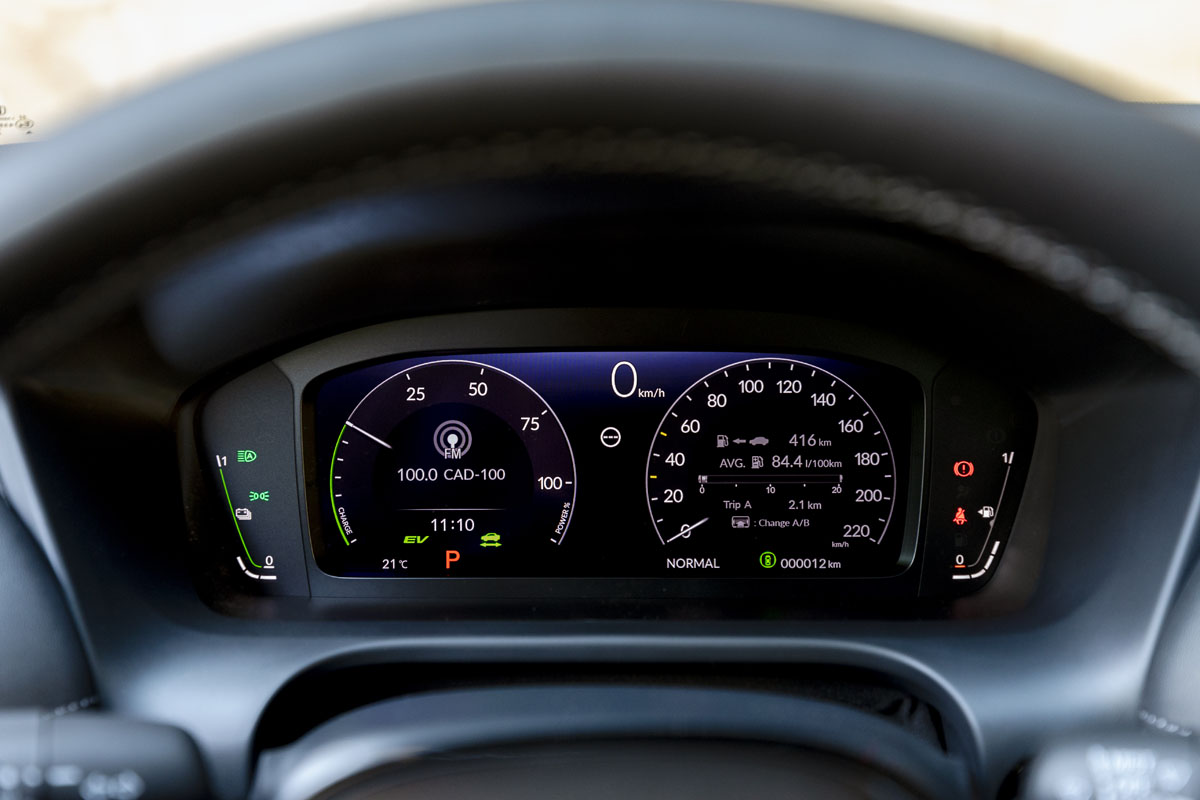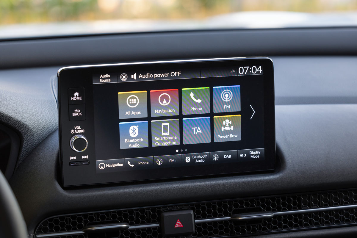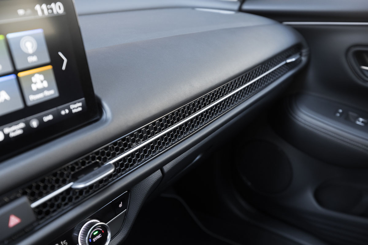 En el interior las semejanzas con el Civic son más evidentes y el puesto de conducción es casi un calco del compacto a excepción, lo que se traduce igualmente en una calidad de construcción elevada, con materiales blandos en la mayoría de las zonas que se complementan con otras que han sido fabricadas usando impresión 3D. La digitalización está fuertemente presente con un cuadro de instrumentos de 10 pulgadas (en el Sport es de 7” con relojes analógicos) y un monitor central de 9 pulgadas que ofrece un sistema multimedia sencillo pero intuitivo en el manejo. Además, los mandos de la climatización están separados de la misma mejorando así la ergonomía y el uso. El conjunto digital se completa con un Head-up display proyectado en el parabrisas de 6”.