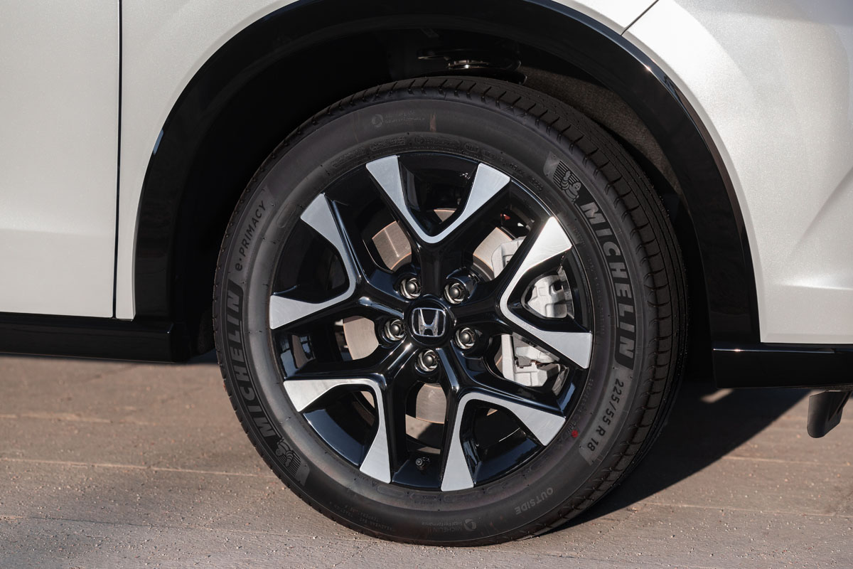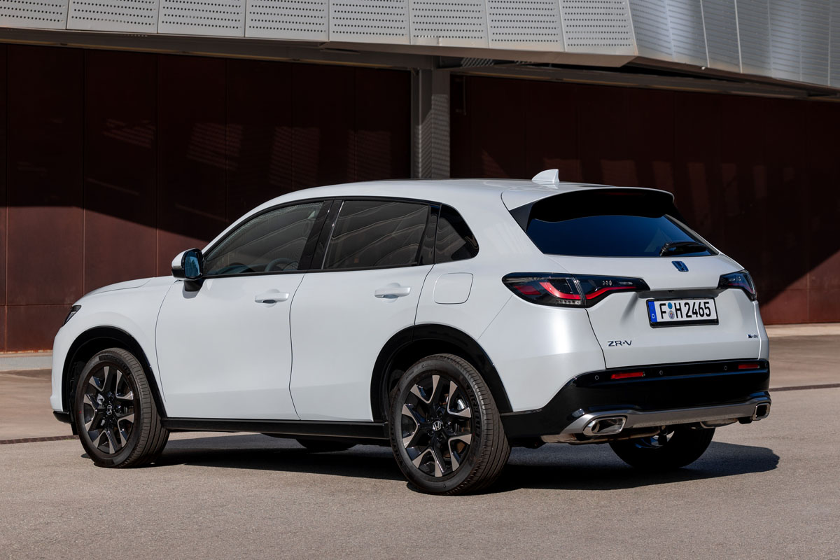 Pero si el frontal es novedoso, no menos llamativa es la trasera, completamente opuesta a la delantera pues propone un diseño más redondeado. Ofrece una luneta de generosas proporciones y un alerón superior de gran tamaño que puede ser incluso mayor gracias a los diferentes packs de accesorios. Los grupos ópticos tienen un diseño muy estilizado resulta incluso novedoso que no se conecten entre sí mediante ninguna tira de LED. Del mismo modo, me llama la atención el diseño deportivo del paragolpes con dos salidas de escape ¡reales!, algo atípico ya en el sector, más aún si tenemos en cuenta que este ZR-V es un híbrido. El resto se completa con unas llantas hasta de 18 pulgadas, pasos de rueda embellecidos en negro piano que le dan un toque elegante y una superficie acristalada amplia. En cuanto a los tonos de carrocería, hay 5 para elegir con este blanco nacarado completamente nuevo.
