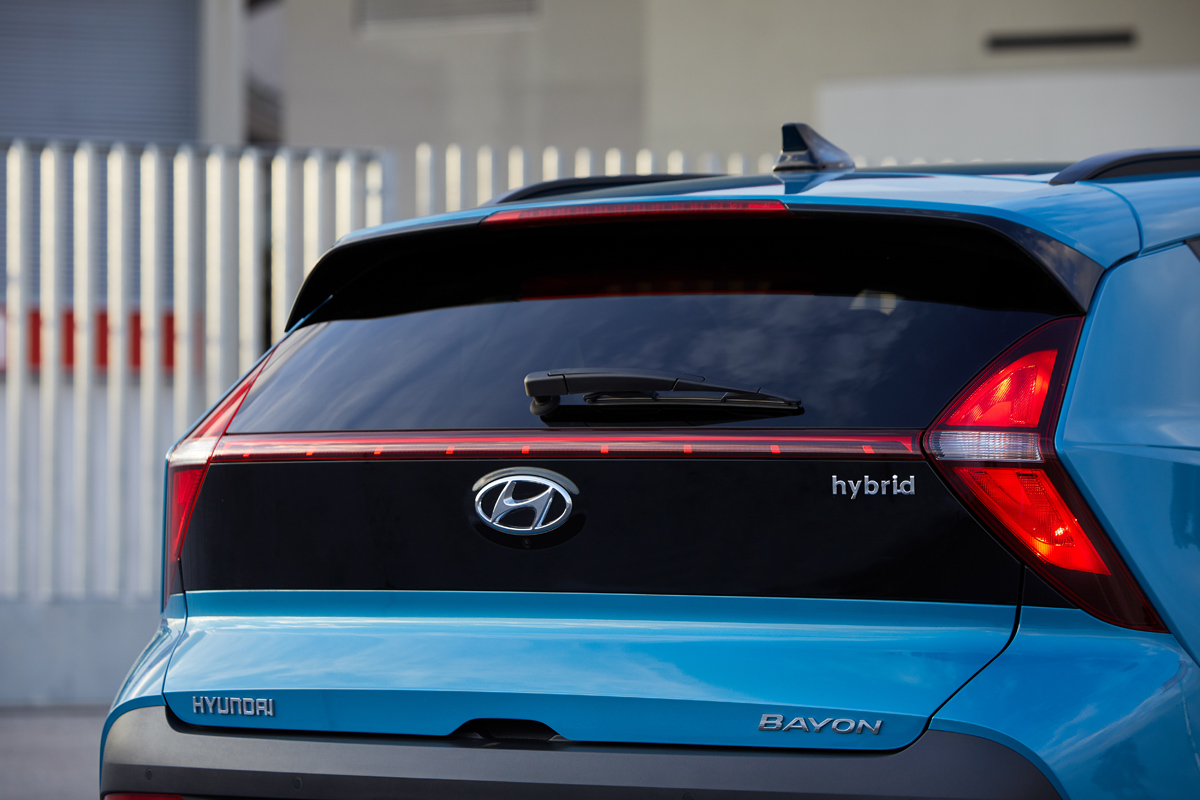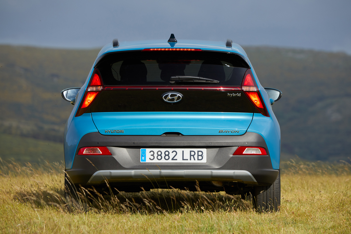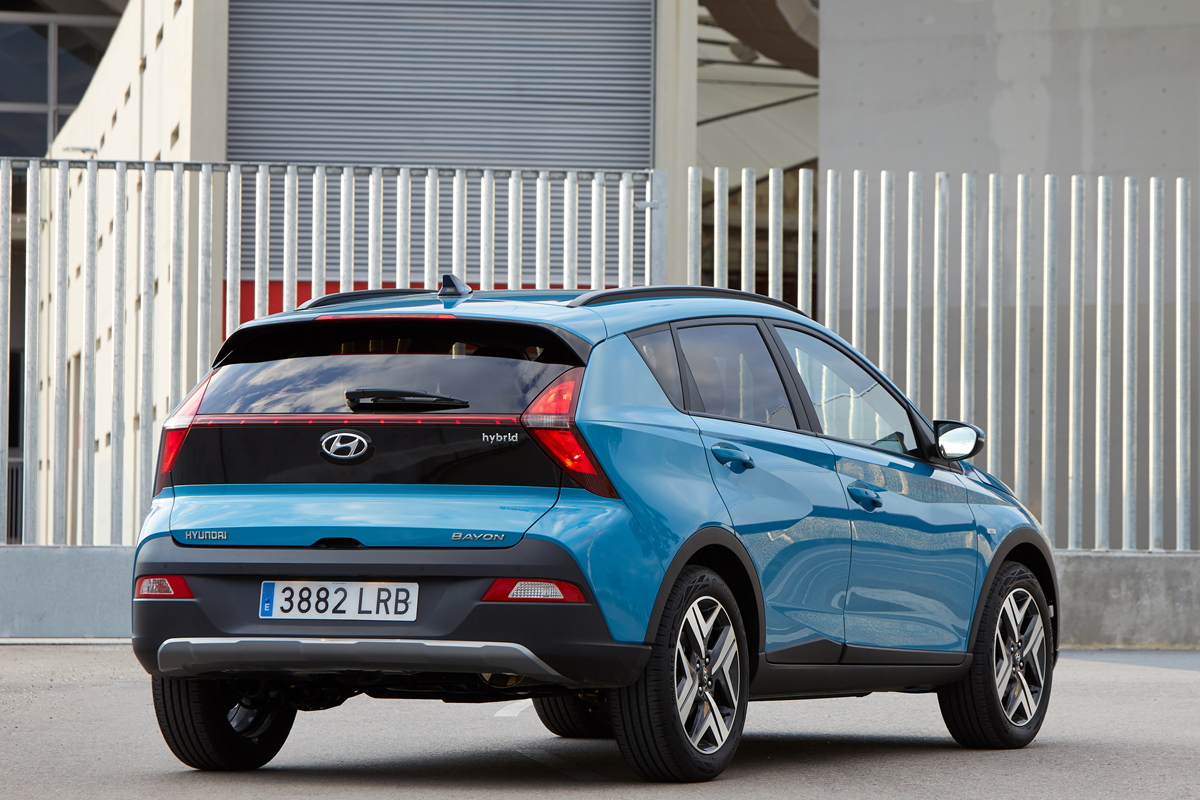 Estas dos zonas se conectan con una silueta lateral diferente en la que sobresale un pilar C sobredimensionado que parece estirar el coche hacia atrás dando mayor sensación de longitud. No obstante, el Bayon 2021 es 2,5 cm más corto que el Kona, hasta los 4,18 metros; cota que completa con una anchura de 1,77 metros y una altura de 1,88 metros así como una altura libre al suelo de 18,3 cm (el Kona cifra 17 cm). El conjunto se completa con llantas que van de las 15 a las 17 pulgadas y con nueve colores de carrocería entre los que se encuentra el Mangrove Green exclusivo de este modelo y combinable con el techo en negro.