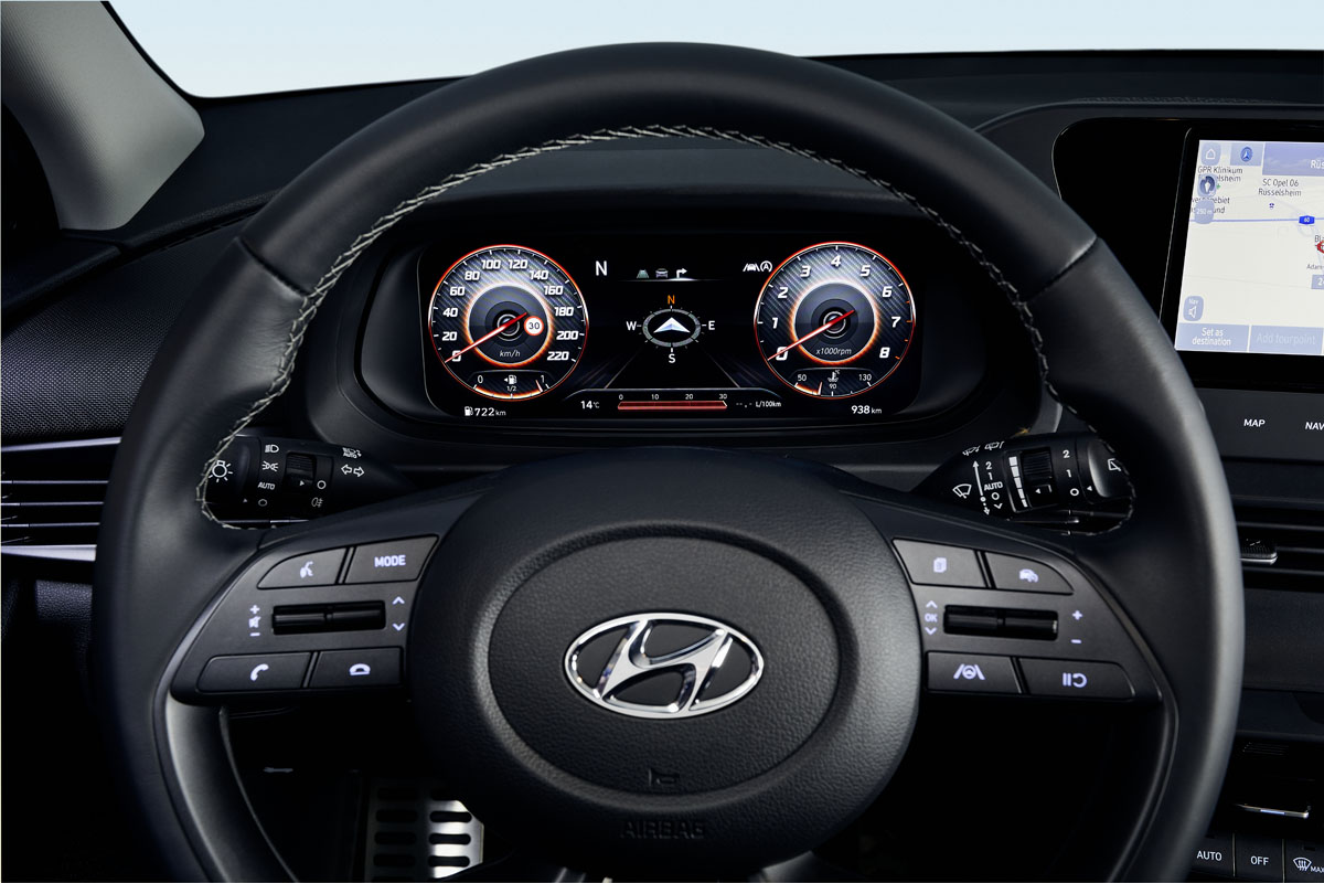 Del puesto de conducción lo más destacado es la posibilidad de montar una doble pantalla de 10,25 pulgadas, tanto para cuadro de instrumentos como para sistema multimedia). Y es que la disposición es idéntica a la del i20 del que parte, incluyendo los plásticos duros del salpicadero (están muy bien ensamblados eso sí) y la disposición de los comandos.
