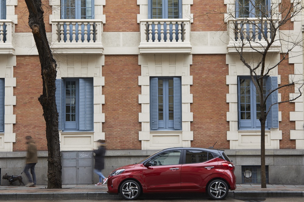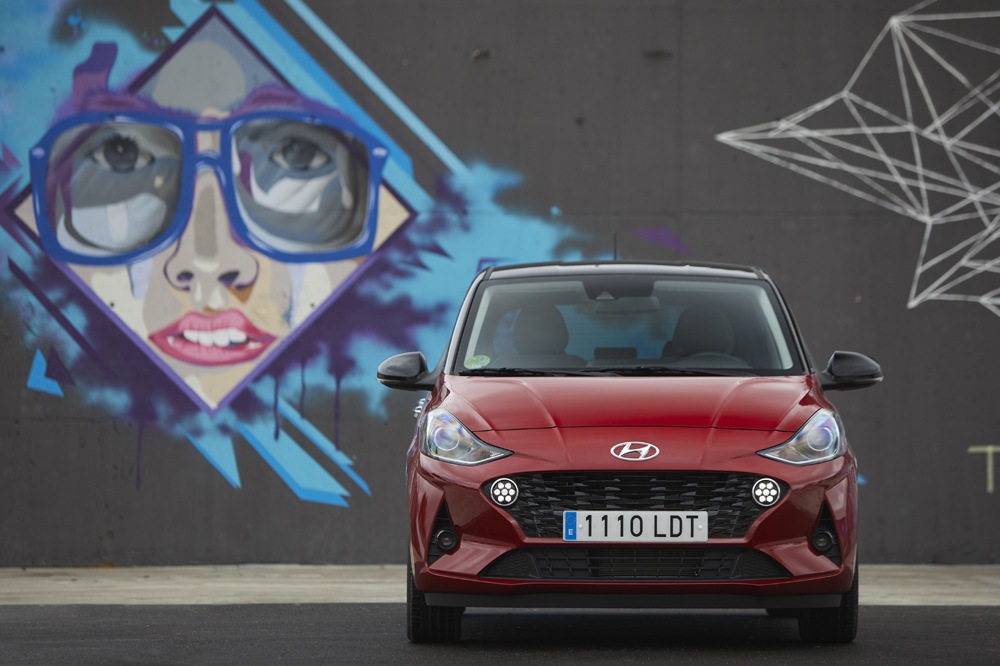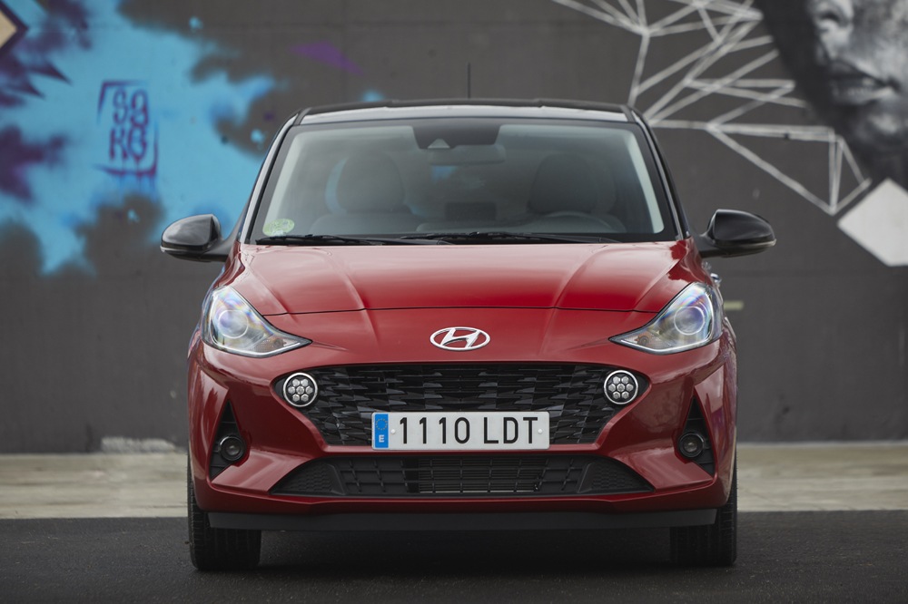 La primera impresión al ver el coche de la prueba, el Hyundai i10 2020, es que han conseguido dotar al modelo de una imagen más dinámica. En esto tiene mucho que ver el hecho de que sea 20 mm más bajo y 20 mm más ancho que antes o que la carrocería tenga formas más complejas. El frontal está dominado por una gran parrilla sobre la que se sitúan las luces de conducción diurna y la matricula. Debajo y a los lados de esta hay entradas de aire con la que transmite cierta deportividad.