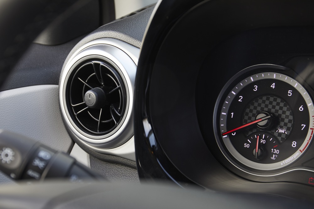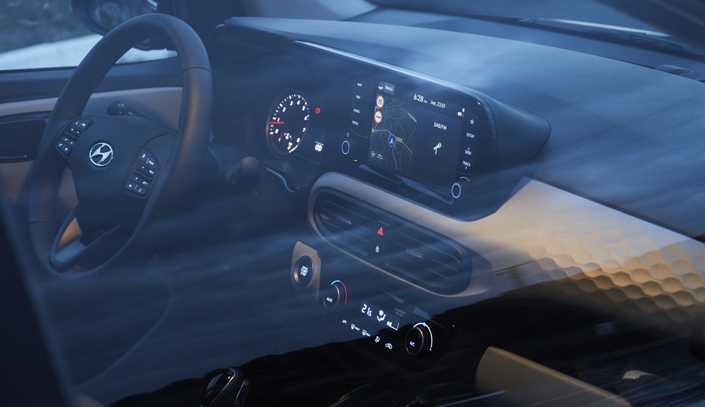 Al igual que ha sucedido con el exterior, el diseño del habitáculo del Hyundai i10 2020 que pruebo ha mejorado notablemente. El salpicadero presenta un aspecto horizontal con líneas limpias y detalles más elaborados. Transmite sensación de mayor calidad y en función del acabado, cuenta con elementos decorativos en 3D con un patrón de nido de abeja, visibles tanto en la parte derecha del salpicadero como en la consola central o en los paneles de las puertas.
