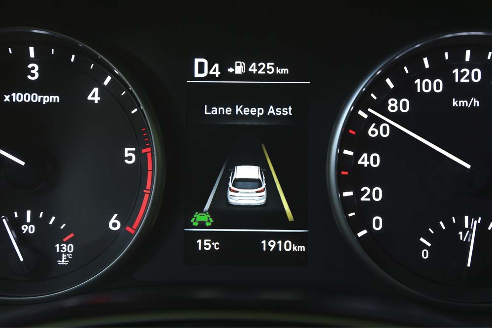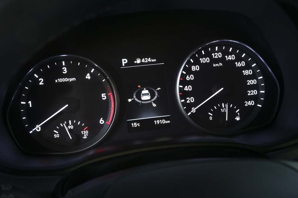 Pulso el botón de encendido y me sorprende la baja rumorosidad de su motor. Segundo punto positivo. Por ciudad el coche se desenvuelve a las mil maravillas gracias a su dirección rápida -según Hyundai, es un 10% más directa y la respuesta del vehículo es 15 milisegundos más rápida- y su suspensión, que filtra las irregularidades del terreno de forma sensacional. Salgo a la carretera y noto que el motor tiene empuje, bastante lineal para ser sobrealimentado, pero con buena respuesta y buenas recuperaciones; eso sí, me da la sensación de rendir 120 CV más que 140, pero solo cuando (mirar ficha técnica 0 a 100) trabaja con el cambio manual de seis relaciones, que, por cierto, es rápido y de guiado precioso; porque cuando está asociado al automático de doble embrague y siete relaciones la sensación es mejor, de más empuje, aunque es equivocada porque el cambio manual realiza el 0 a 100 km/h tres décimas más rápido (8,9”). Además, no brinda excesivos tirones, característicos de este tipo de transmisiones, y la transiciones las realiza, normalmente, de forma suave.