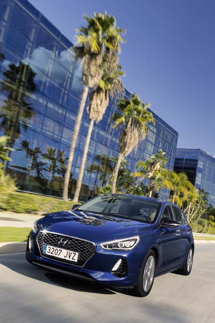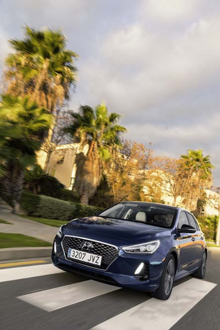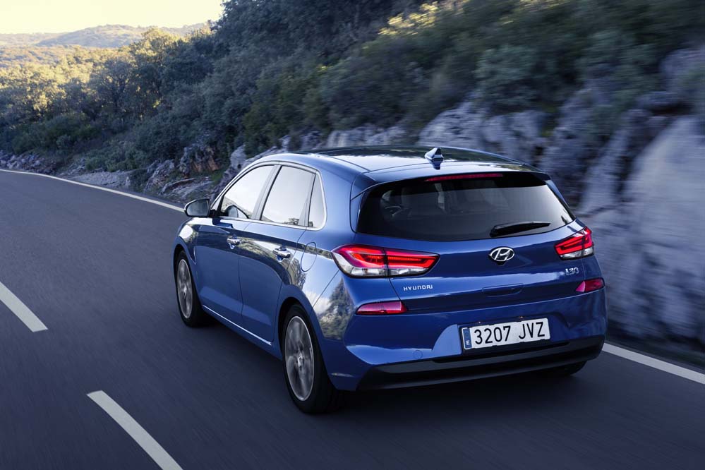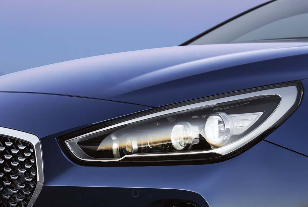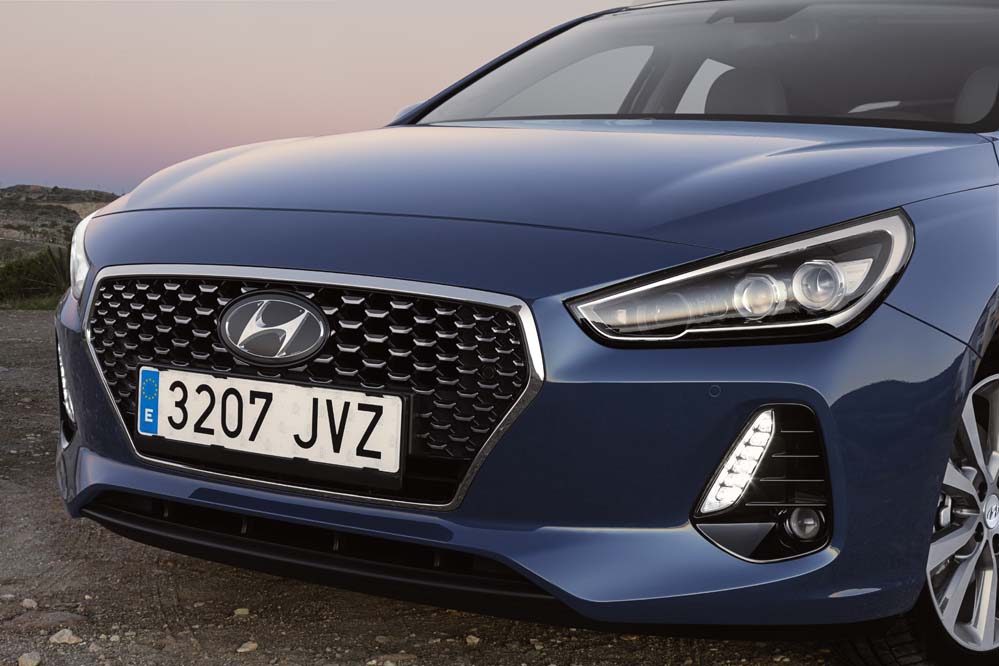 Solo hay que dirigir un vistazo rápido, sin apenas atención, a su escupido diseño exterior. Es más refinado que el modelo al que sustituye, pero también más atractivo. La parte frontal gana enteros con su nueva parrilla hexagonal en forma de cascada, con puntos cromados que se convierten en cromo satinado circundante de la versión de acceso. Es el futuro en lo que a nueva identidad de marca se refiere, hecho que demuestra la importancia que tiene el i30 para Hyundai Europa, continente donde ha sido diseñado, desarrollado, probado y producido. La calandra está escoltada por dos afilados faros LED compuestos por tres proyectores, que sirven las luces cortas y largas, y por las diurnas verticales con tecnología LED, también con función de intermitentes. Y es que gracias a la composición de los grupos ópticos delanteros, el nuevo i30 tiene una ‘mirada’ inconfundible.
