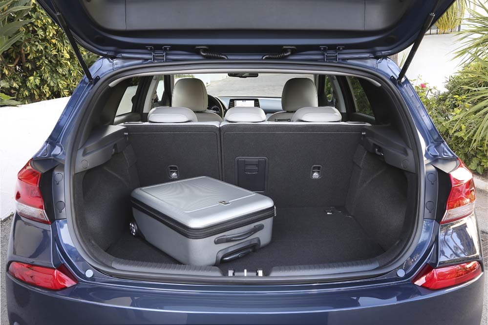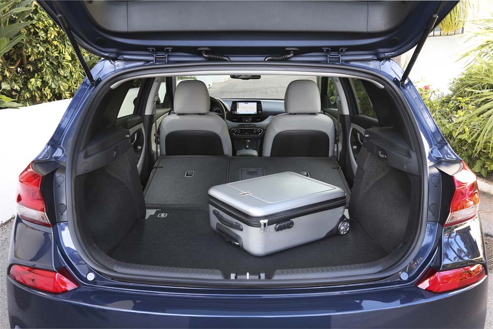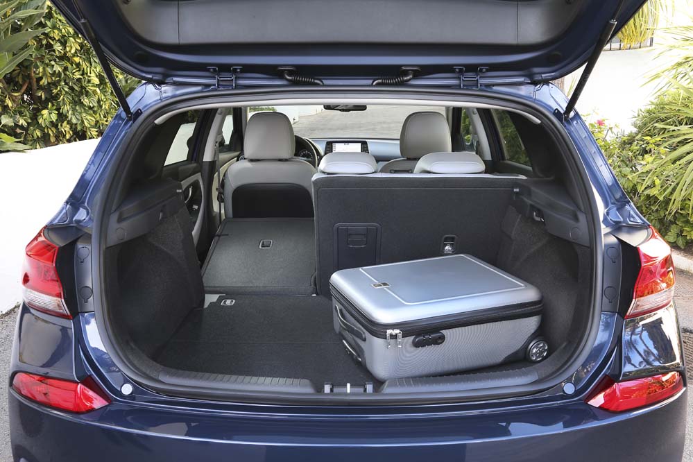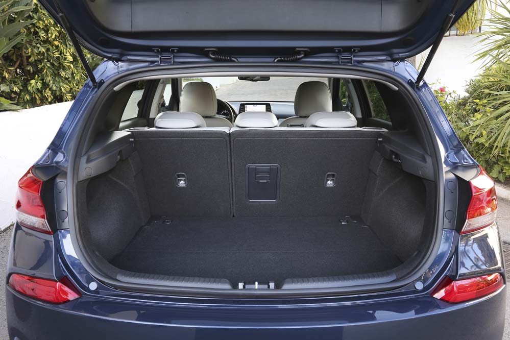 El maletero del Hyundai i30 2017 cubica 395 litros, una cifra muy interesante, y más si se compara con el resto de pesos pesados como el Volkswagen Golf y el SEAT León, ambos con 380 litros, el Renault Mégane (ver prueba), con 385, el Opel Astra (ver prueba), con 370 y el Ford Focus, con 363 litros. Además, tiene formas regulares, doble altura y su capacidad de carga puede verse ampliada hasta los 1.301 litros si se abaten los respaldos de los asientos posteriores, aunque la superficie que dejan no es totalmente plana. Para facilitar la carga de esquís, pueden adoptar una trampilla en el asiento central trasero.