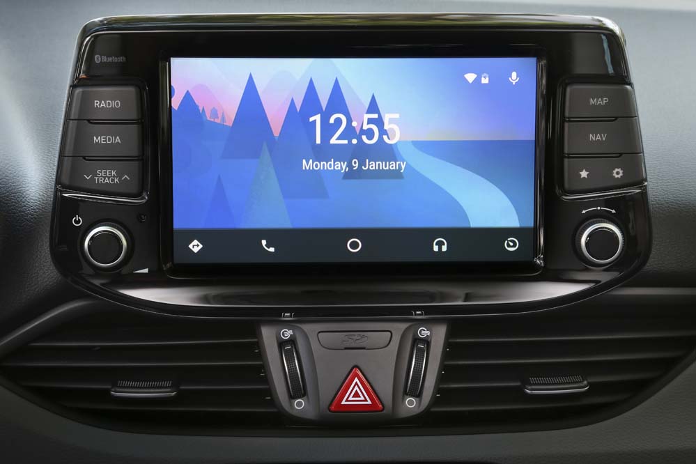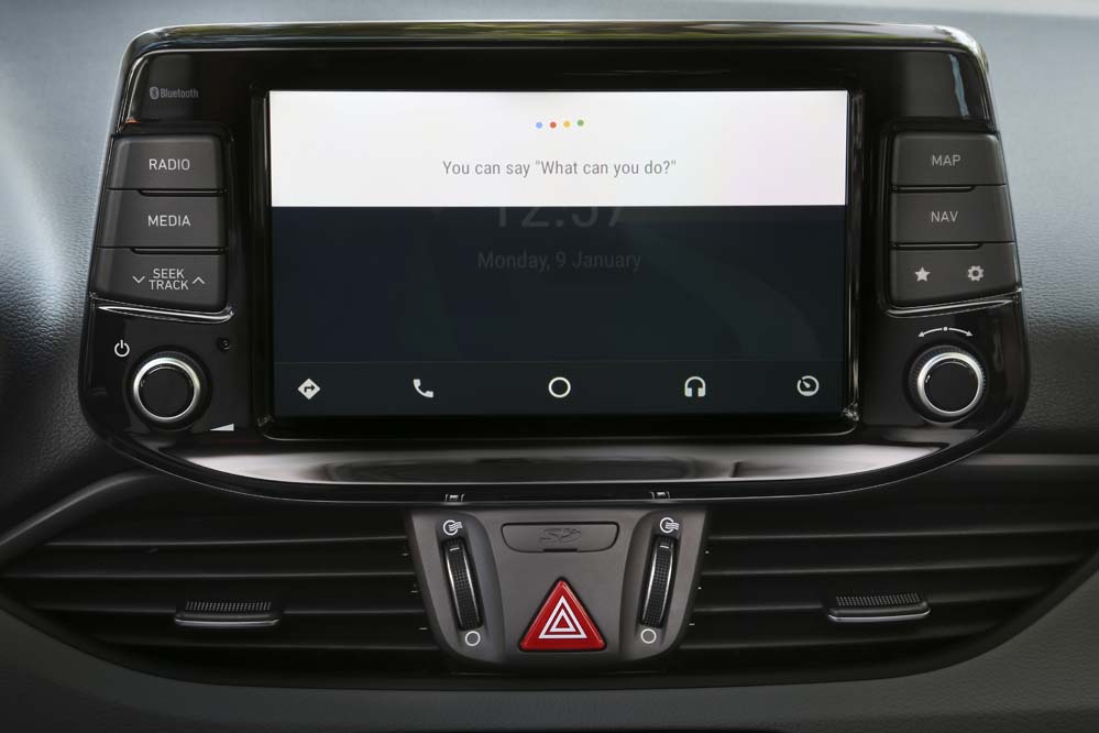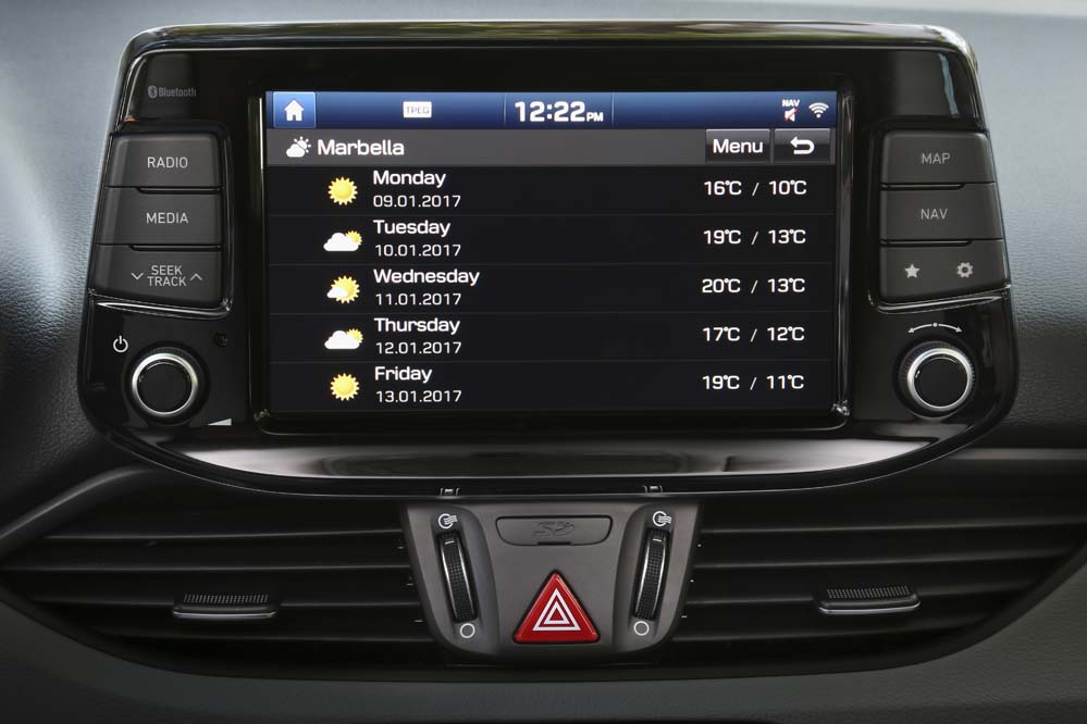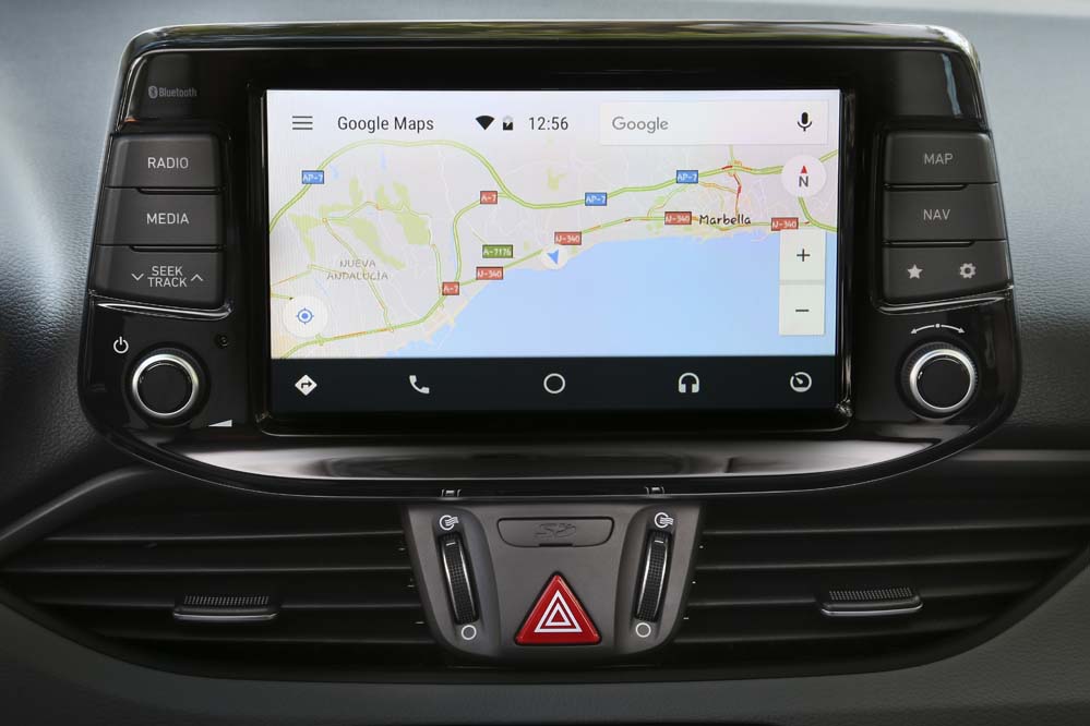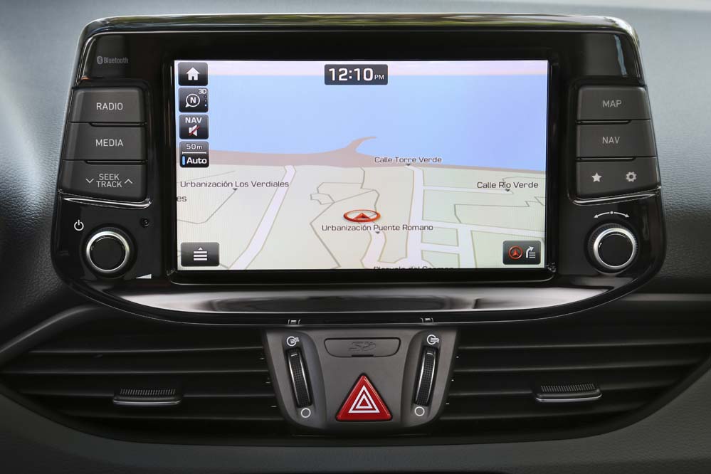 Me acomodo en el asiento del conductor y cierro la puerta. Su sonido me indica que es un coche muy bien hecho. En Hyundai están seguro de ello, si no no ofrecerían una garantía de cinco años sin límite de kilometraje. Lo primero que me llama la atención es la pantalla flotante del sistema de infoentretenimiento, parecida a la equipada por el Mercedes Clase A (ver prueba), pero con un aspecto de mayor calidad. Buenos materiales, muy buena calidad percibida, aunque me sorprende que la parte inferior de la zona media del salpicadero -está dividido en dos- sea de plástico duro.