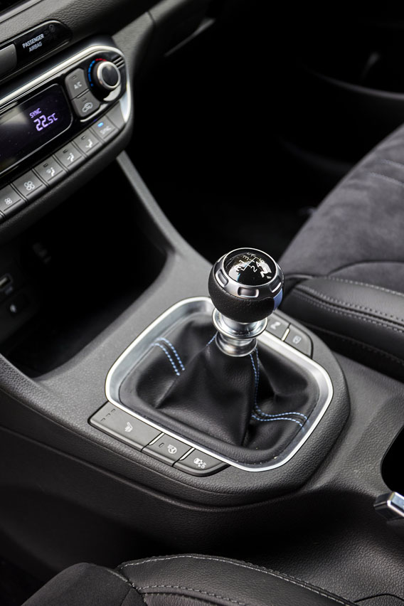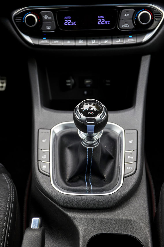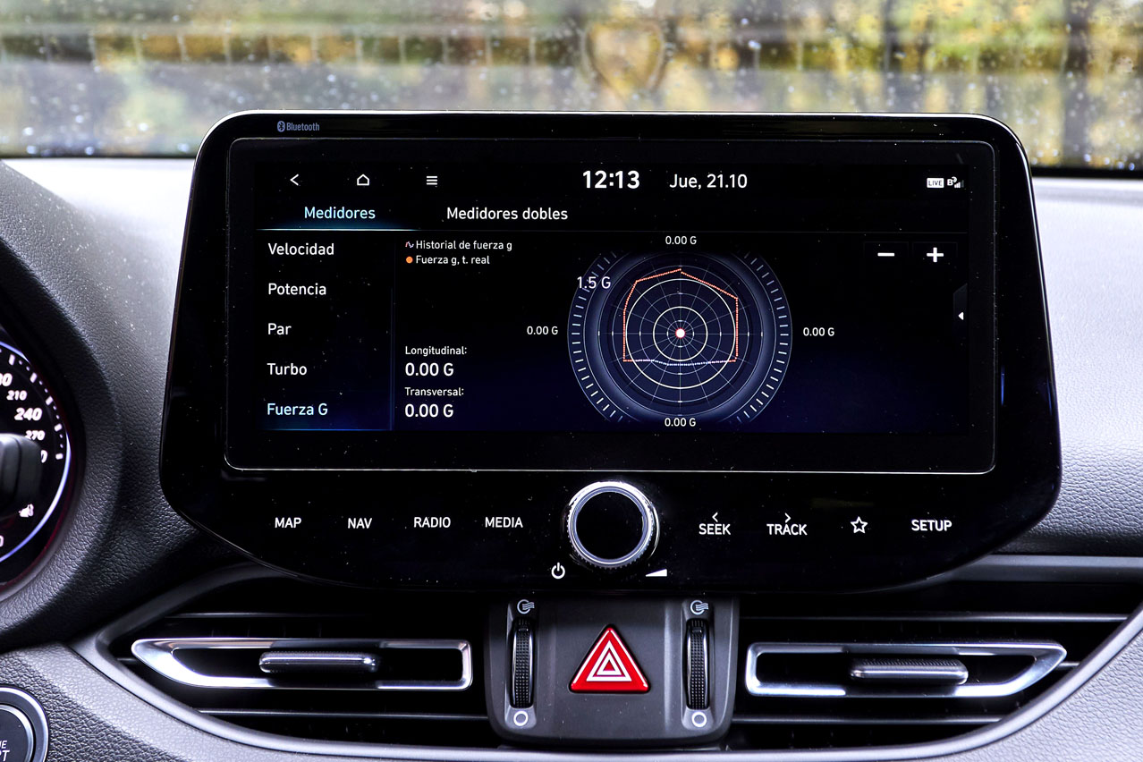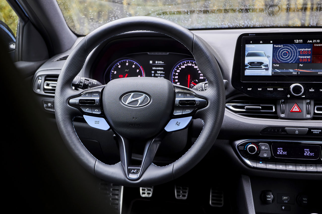 Desde el primer segundo admiro el peso de su dirección, incluso en el modo ECO. También la rapidez, los recorridos cortos y la precisión de su cambio manual. El Hyundai i30 N Performance 2021 de la prueba también está disponible con una transmisión automática de doble embrague creada por el fabricante coreano (3.000 euros). No la he probado, pero me decantaría por este magnifico cambio manual -si me tengo que escribir la prueba en el atasco de hora y media que me chupé ayer, quizá mi recomendación sería otra-.