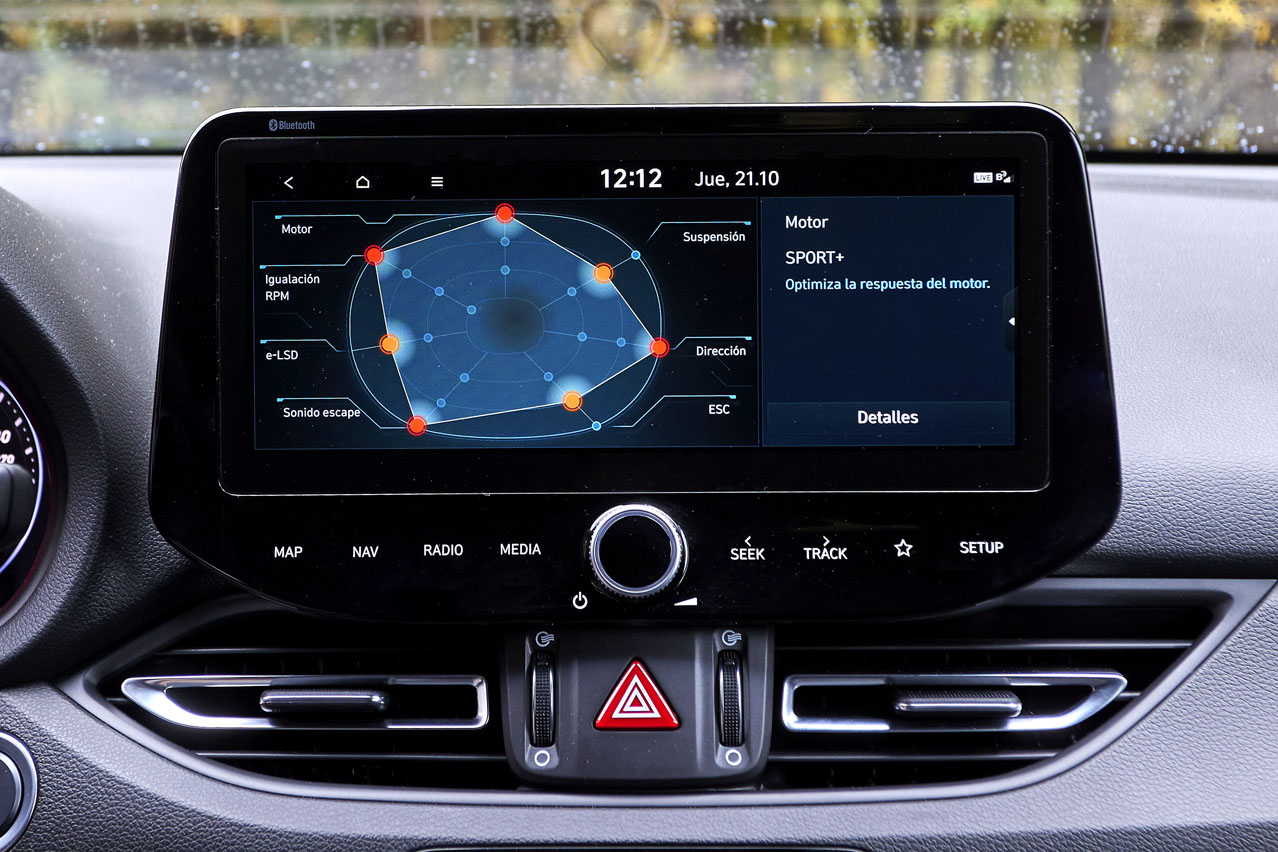 Y la guinda no la ponen sus neumáticos Pirelli PZero especialmente desarrollados para Hyundai, como pone de manifiesto la especificación HN de la goma, o los diferentes modos de conducción (Eco, Normal, Sport, N y N Custom), uno de ellos totalmente personalizable. No. La ponen los tres niveles de ‘control’ del ESP: activado, ESP Sport, en el que se permite un ligero deslizamiento, y desactivado.