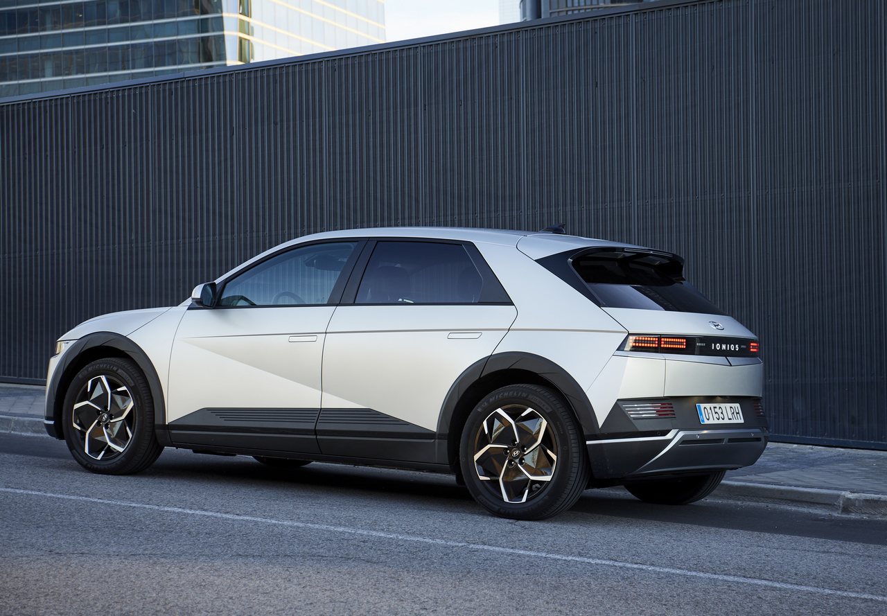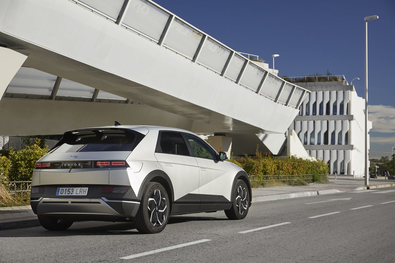 Circular a bordo del Hyundai Ioniq 5 por las calles de Madrid es toda una experiencia. Porque pocos coches de su rango de precio llaman tanto la atención de los automovilistas y peatones como este. Y es normal, a fin de cuentas y como decía más arriba, parece un verdadero prototipo. Todo gracias a una carrocería de líneas limpias y formas angulosas que combina elementos de inspiración retro con otros de aspecto futurista, como sus llamativos grupos ópticos.