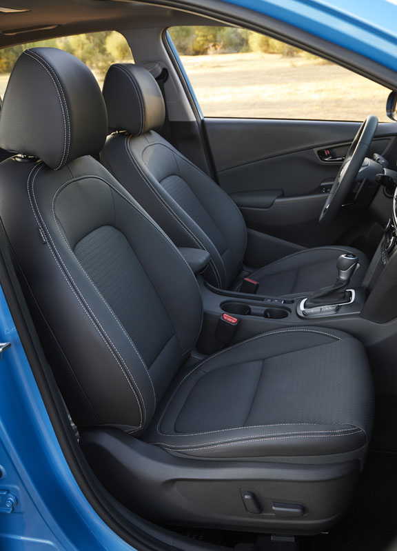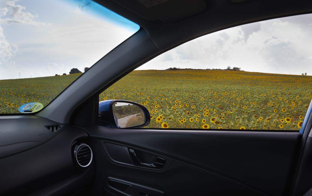 El Kona Híbrido es autorrecargable, por lo que no tiene cables donde enchufarlo, para comodidad del usuario, aunque para perjuicio de la autonomía. La batería te permite moverte durante dos kilómetros, dependiendo de la velocidad, la intensidad con la que pisas el pedal derecho o el nivel de carga. Por ello, circular en ciudad mientras está funcionando el modo eléctrico es un gustazo. También lo es cuando salta el de combustión, aunque, obviamente, a pesar de estar bien insonorizado, se nota esa transición. Y me gusta porque su suspensión es firme, pero cómoda, y porque el coche, con sus 4,16 m de longitud, se mueve de forma ágil en ciudad. Por este motivo, porque es silencioso y porque su consumo en la urbe ronda los 4,0 litros, es una excelente opción de compra. Y ni que decir tiene que en los semáforos verás rápidamente en el retrovisor a tus oponentes gracias a la entrega de par instantánea. Otra bondad de equipar un motor eléctrico... Súmale la etiqueta ECO de la DGT, con los beneficios que ello conlleva.