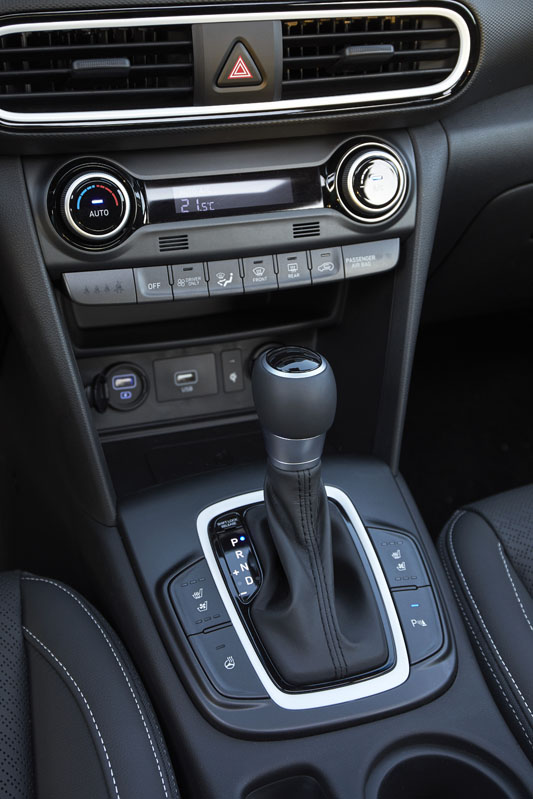 Hecho el repaso de rigor, toca comenzar la prueba del Hyundai Kona Híbrido y tratar la gran diferencia respecto al resto de la gama. Bajo el capó equipa el conocido motor de gasolina 1.6 GDI, pero que en su caso es asistido por un motor eléctrico con el que la potencia conjunta suma 141 CV. ¿Te suena? Sí, es la misma combinación que monta el Hyundai Ioniq 2019, que también hemos podido probar recientemente. Y sí, también está asociado a un cambio automático de doble embrague de seis relaciones, principal elemento diferenciador respecto a la competencia, que suele ser, sobre todo en el caso de Toyota y Lexus, de variador continuo.